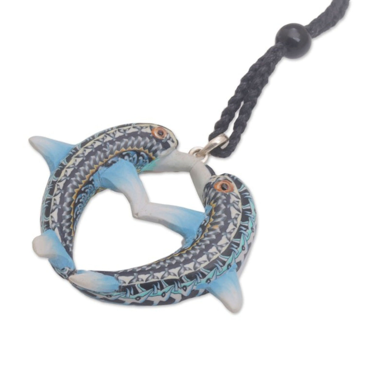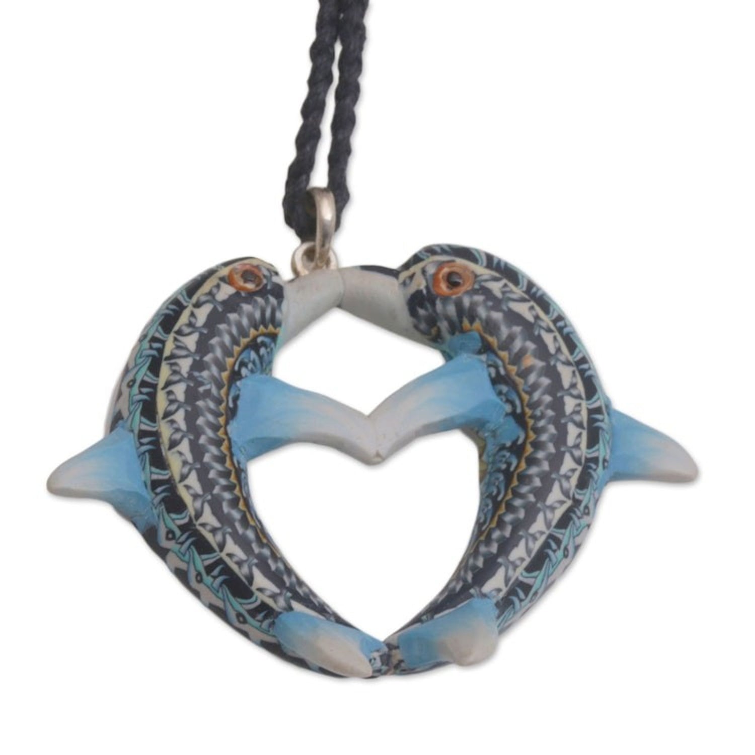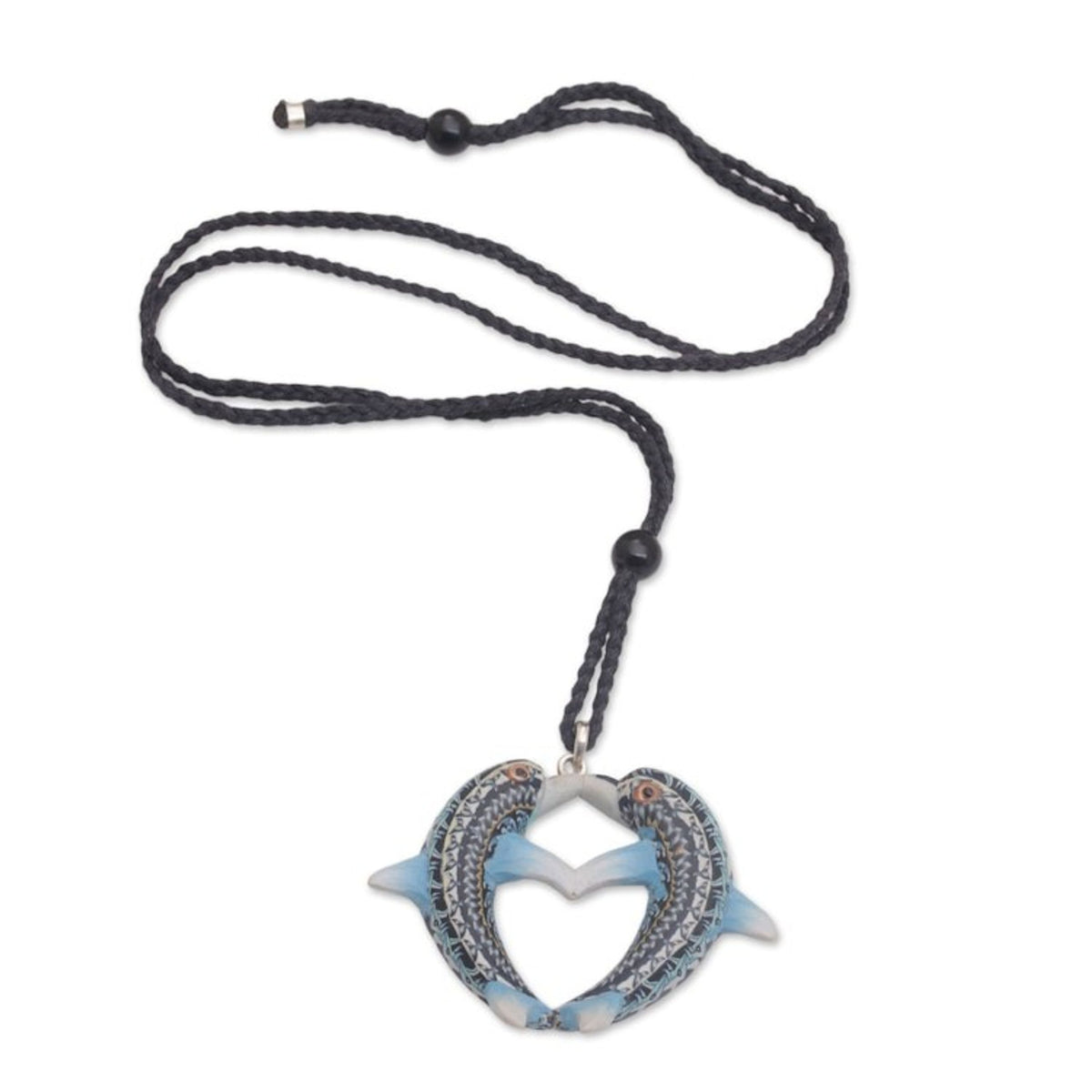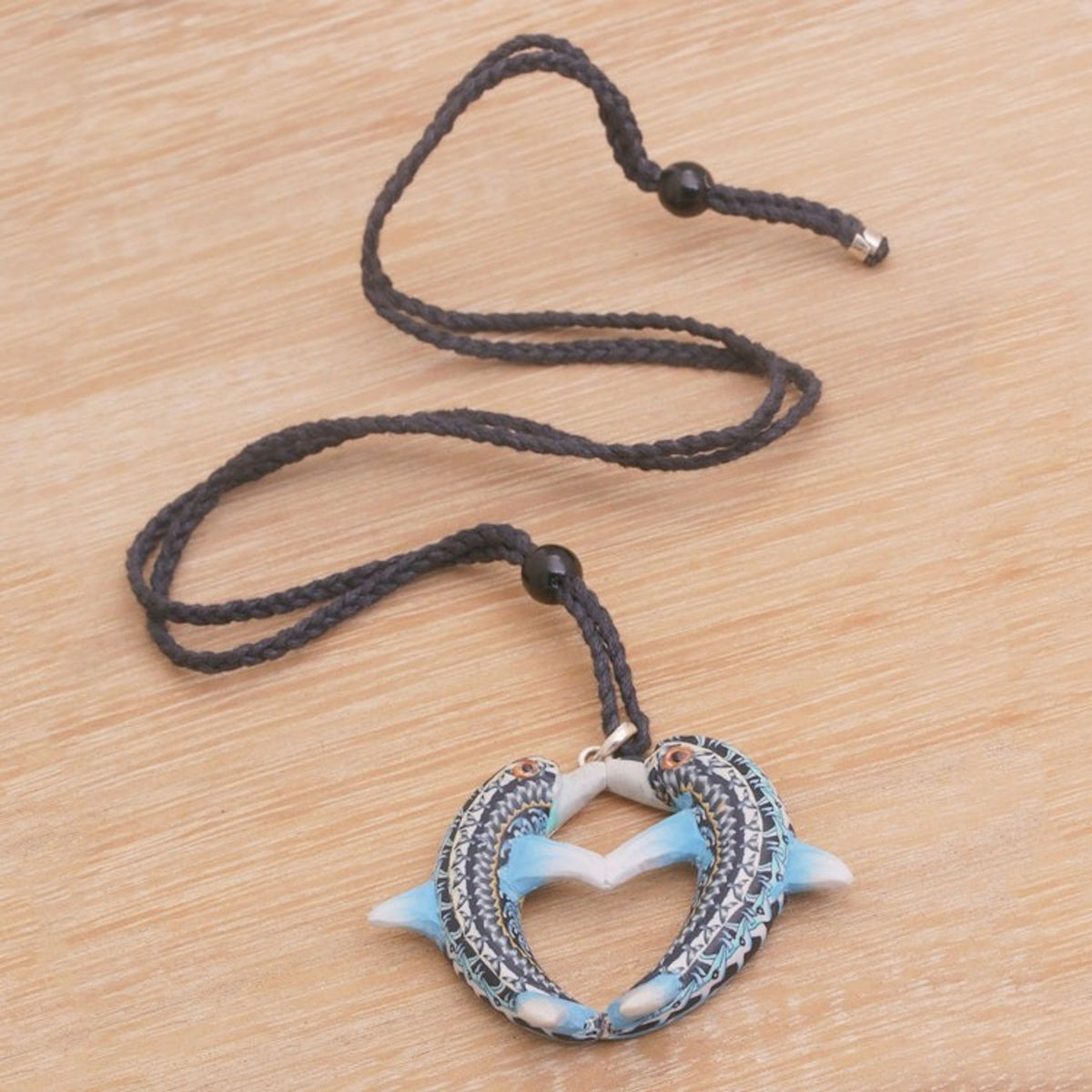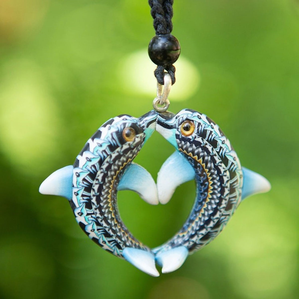 Handmade Polymer Clay Dolphin Pendant Necklace Indonesia 'Dolphin Twins'