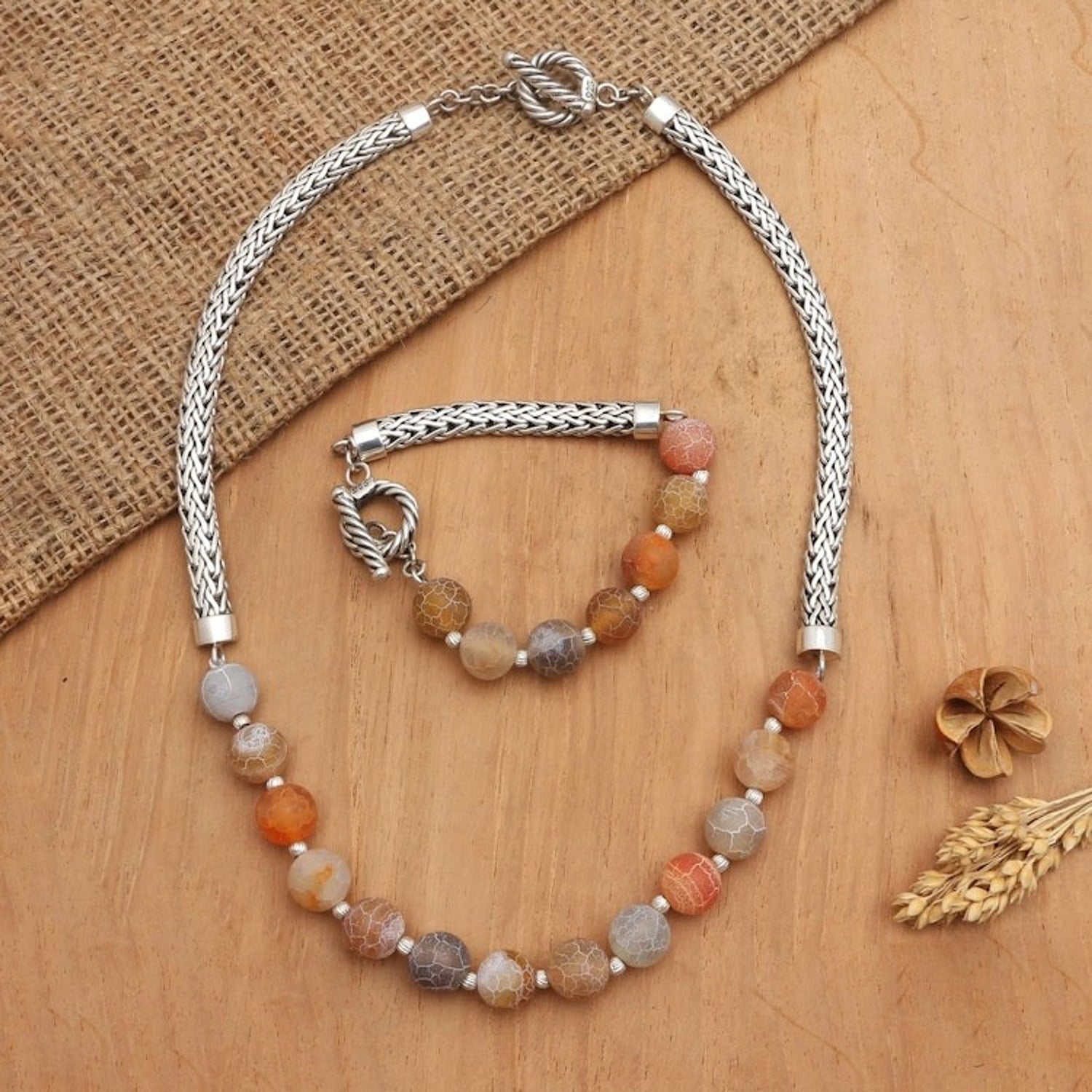 Agate and Sterling Silver Beaded Bracelet 'Sensations'