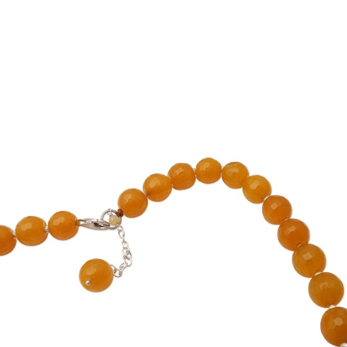 This Sterling Silver and Orange Agate Beaded Necklace 'Evening Cocktail in Orange' by Ketut Sulastri is a fun beaded necklace, perfect for a sunny summer day. The artisan hand crafts the necklace from faceted agate stones and yellow nylon cord. The orange beads, reminiscent of an "orange creamsicle," are accented with sterling silver beads and a lobster claw clasp. The piece is a reflection of the artisan's creativity and dedication.