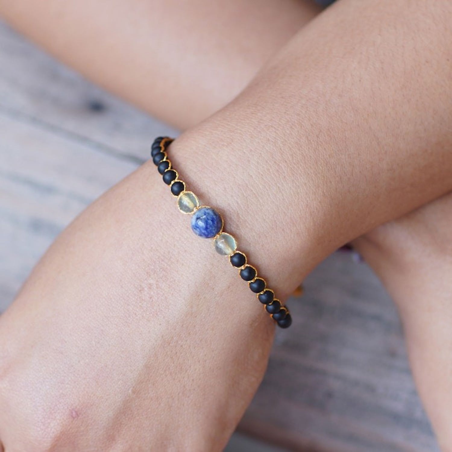 Handcrafted Onyx Bracelet with Fluorite and Sodalite Beads 'Intuition in Darkness'