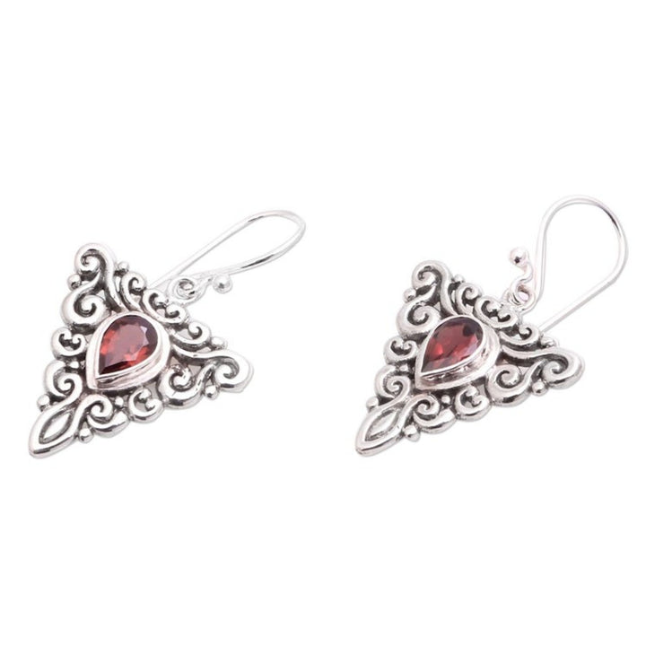 Triangular Garnet Dangle Earrings from Bali 'Triangle Tendrils'