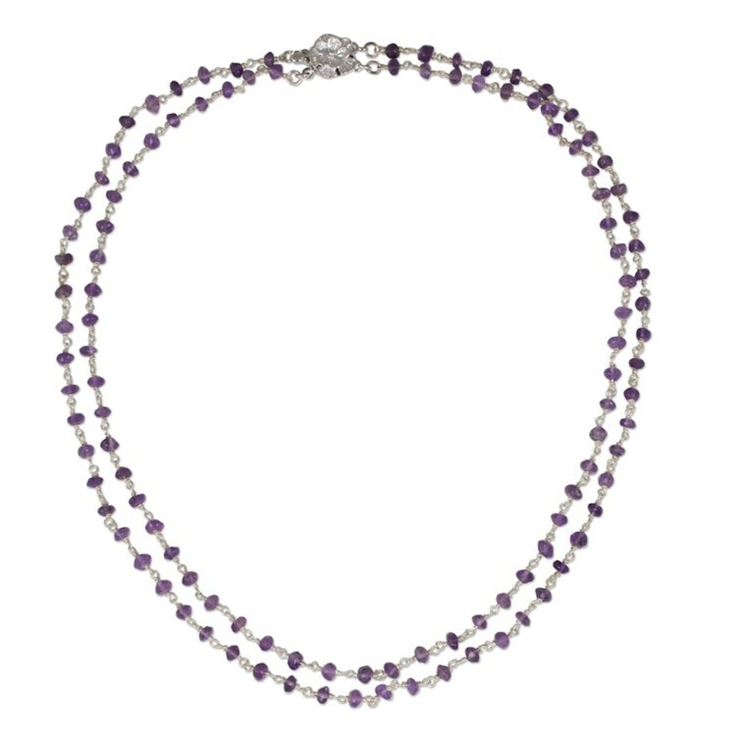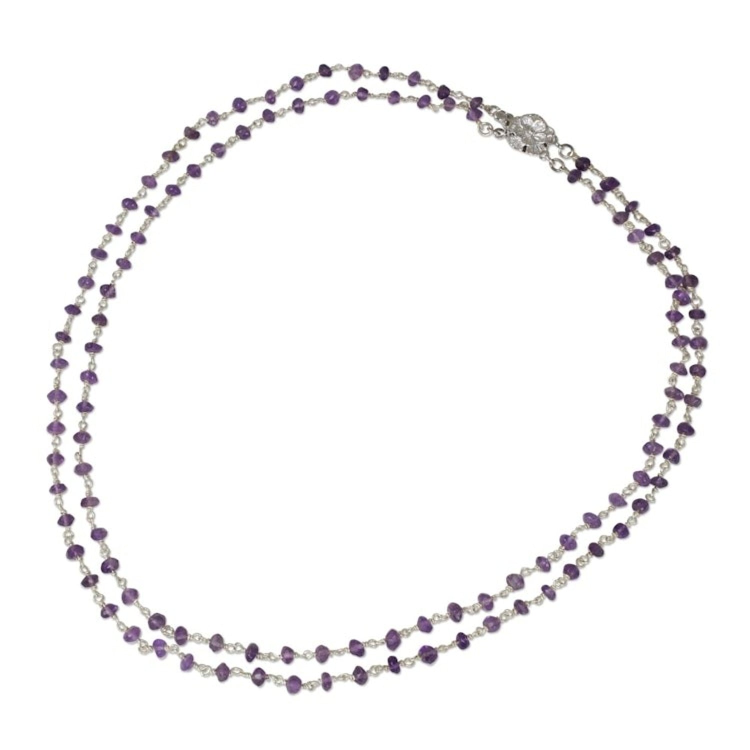 These Amethyst Sterling Silver Drop Earrings 'Luna in Violet' by Matta Nandrakwang are versatile and beautiful. Handcrafted by the artisan, these versatile drop earrings feature polished beads of amethyst suspended on sterling silver hooks. Amethyst is believed to inspire clarity and peacefulness. The piece is a beautiful blend of artistry and tradition.