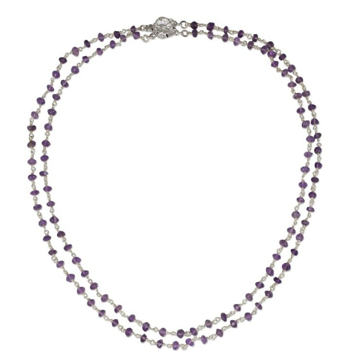 Amethyst Strand Necklace with Flower Clasp Artisan Jewelry 'Regal Water Lily'