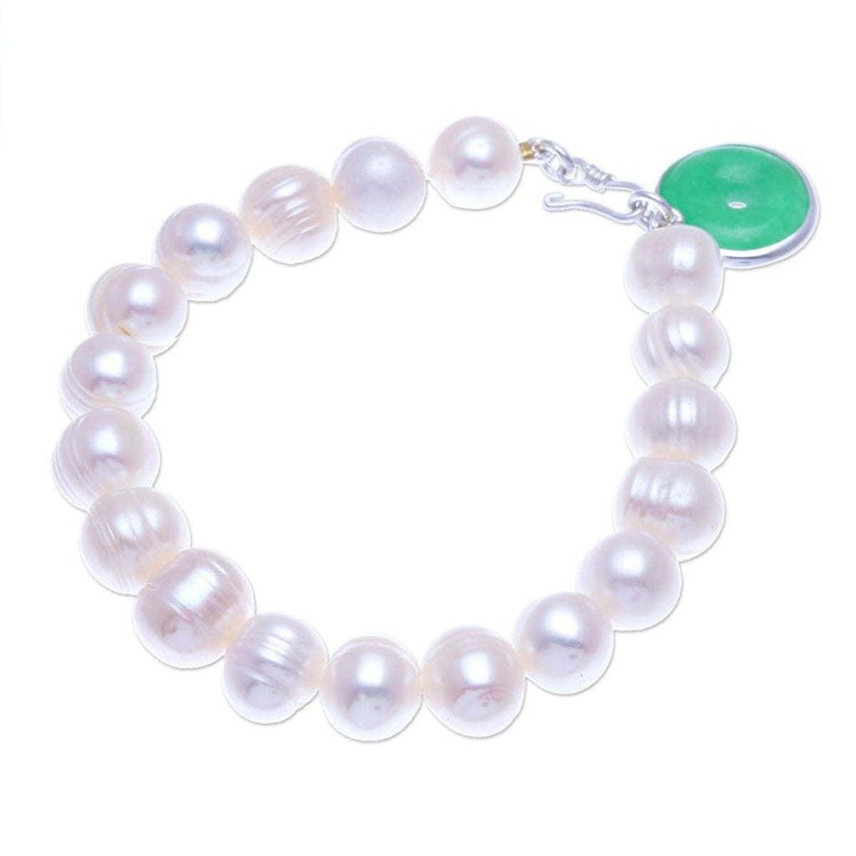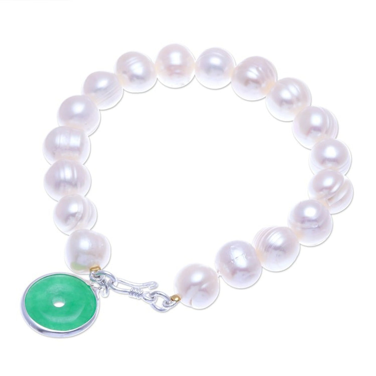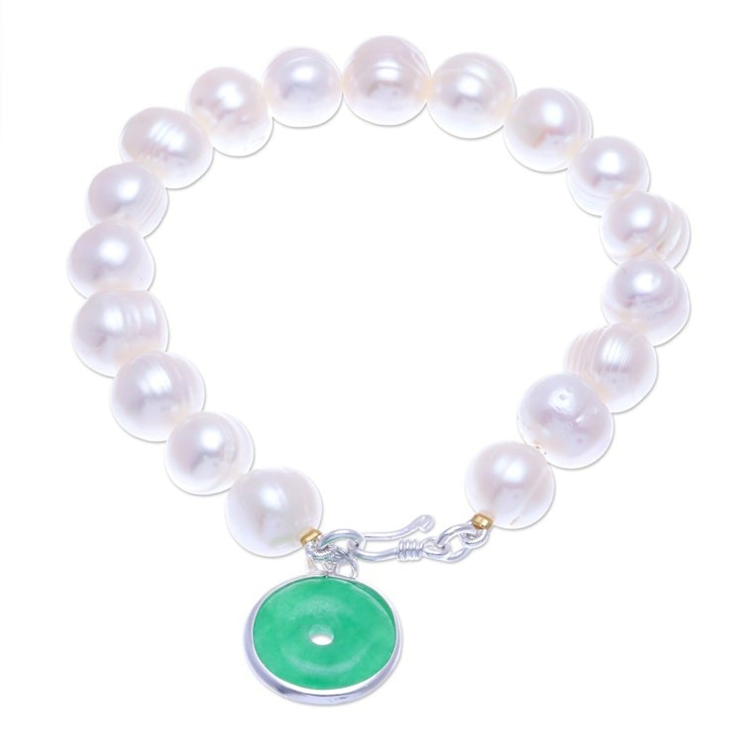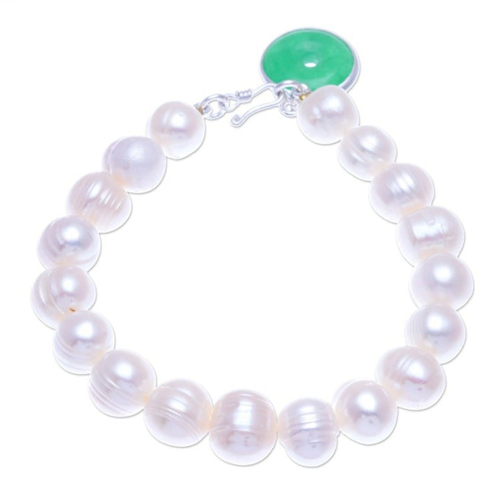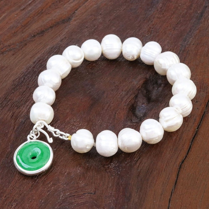 Artisan Crafted Jade and Cultured Pearl Bracelet 'Lucky Pearl'