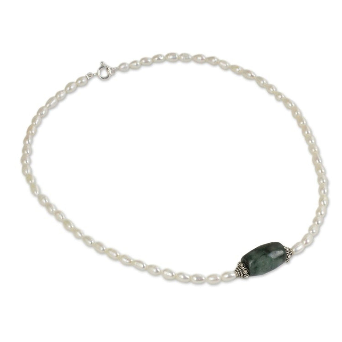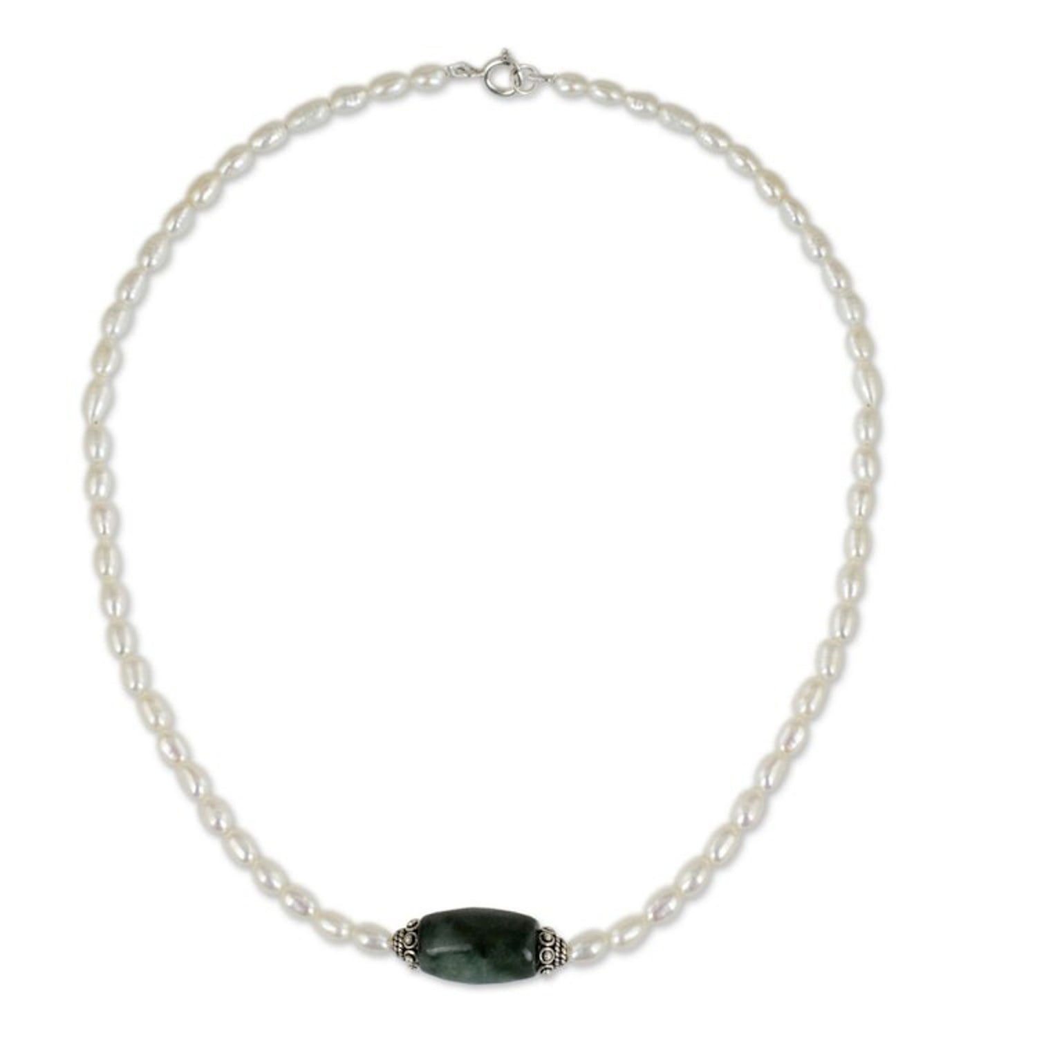 Artisan Crafted Pearl and Jade Necklace 'Purity and Love'