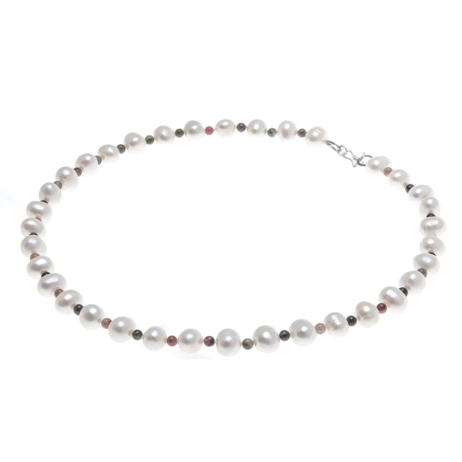 Cultured Pearl and Tourmaline Beaded Necklace from Thailand 'Colorful Palace'