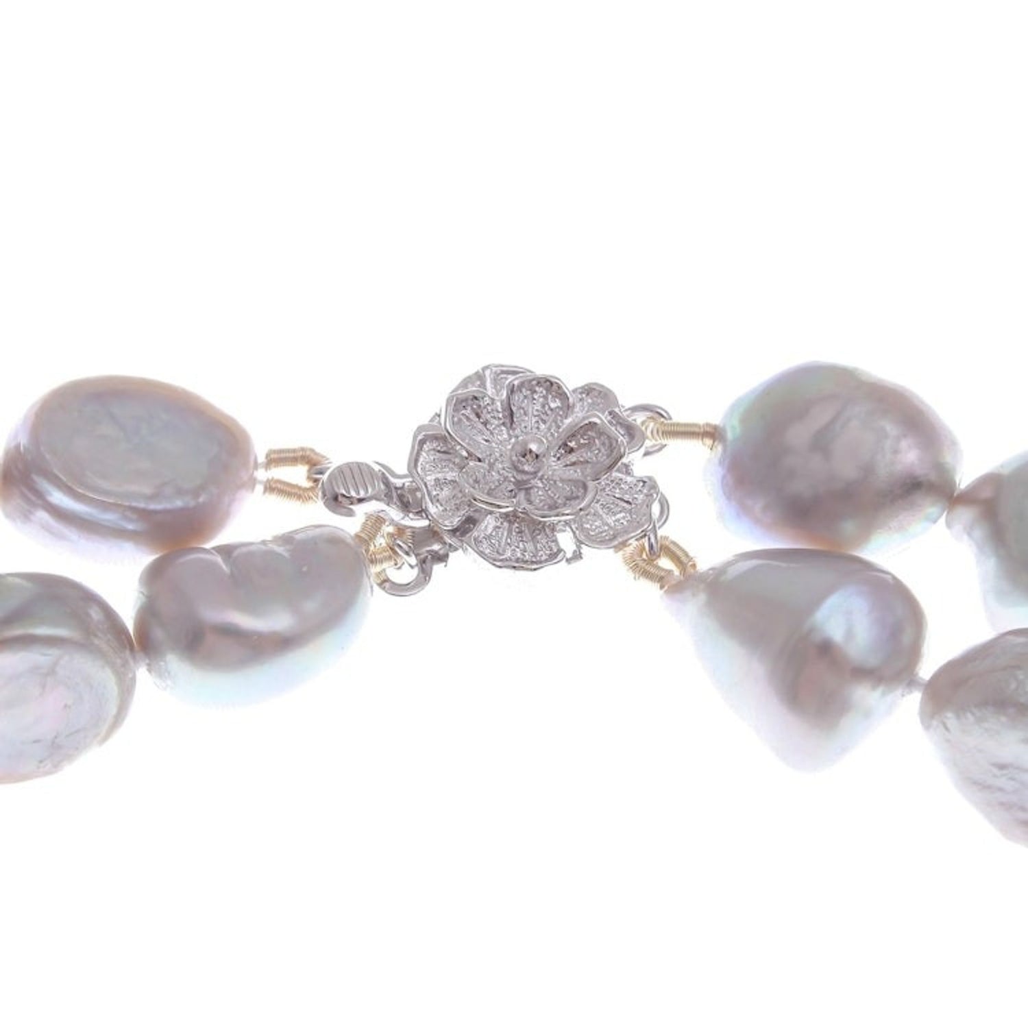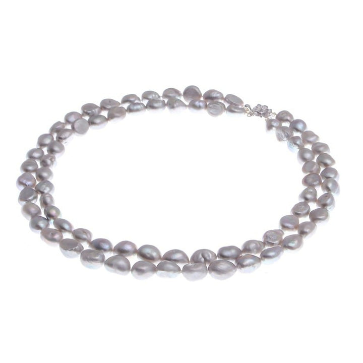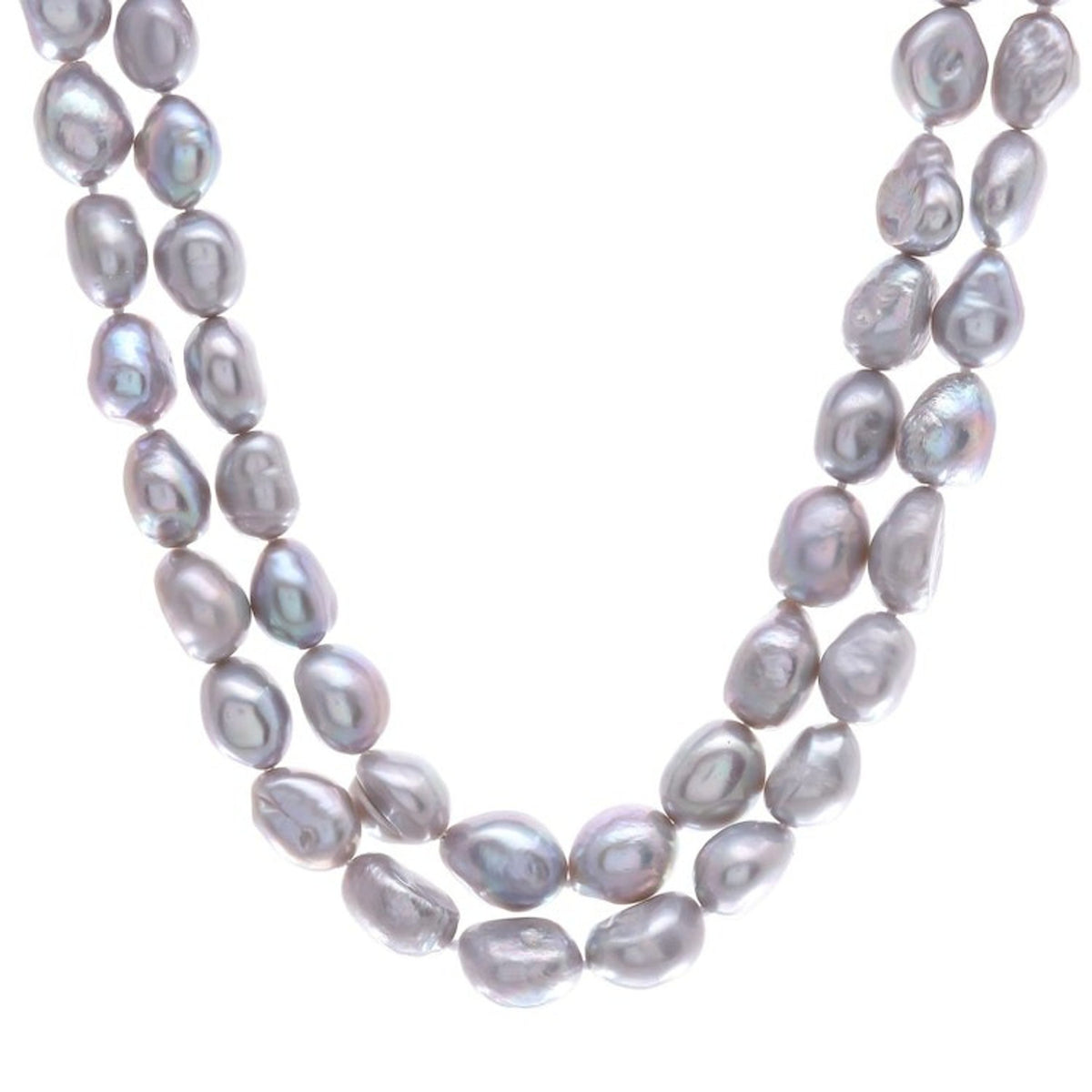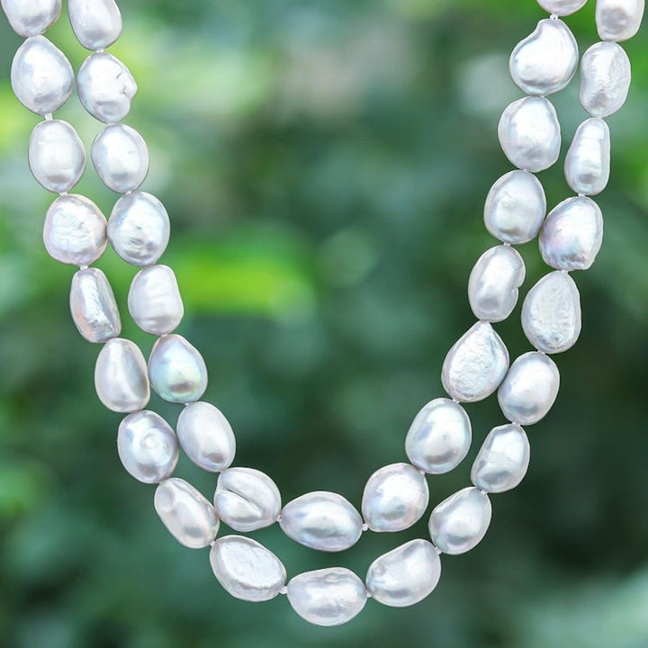 This Grey Cultured Pearl and Sterling Silver Necklace 'Grey Mermaid' by Matta Nandrakwang is an elegant, double-strand pearl necklace. The artisan hand-threads two strands of naturally grey cultured freshwater pearls, finishing the piece with a lovely flower-stamped box clasp. The piece is a wonderful blend of artistry and tradition.