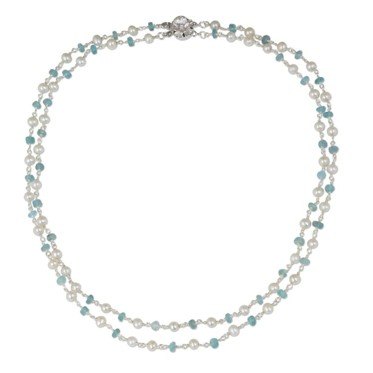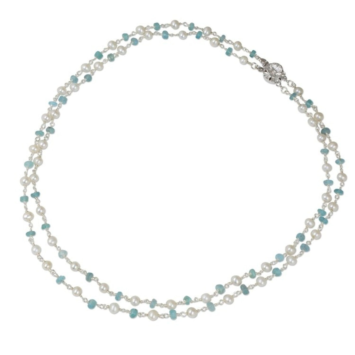 Handcrafted with freshwater cultured pearls and apatite beads, this necklace features a 925 sterling silver box clasp. It measures 16.8 inches L and 8 mm W with a combination finish.