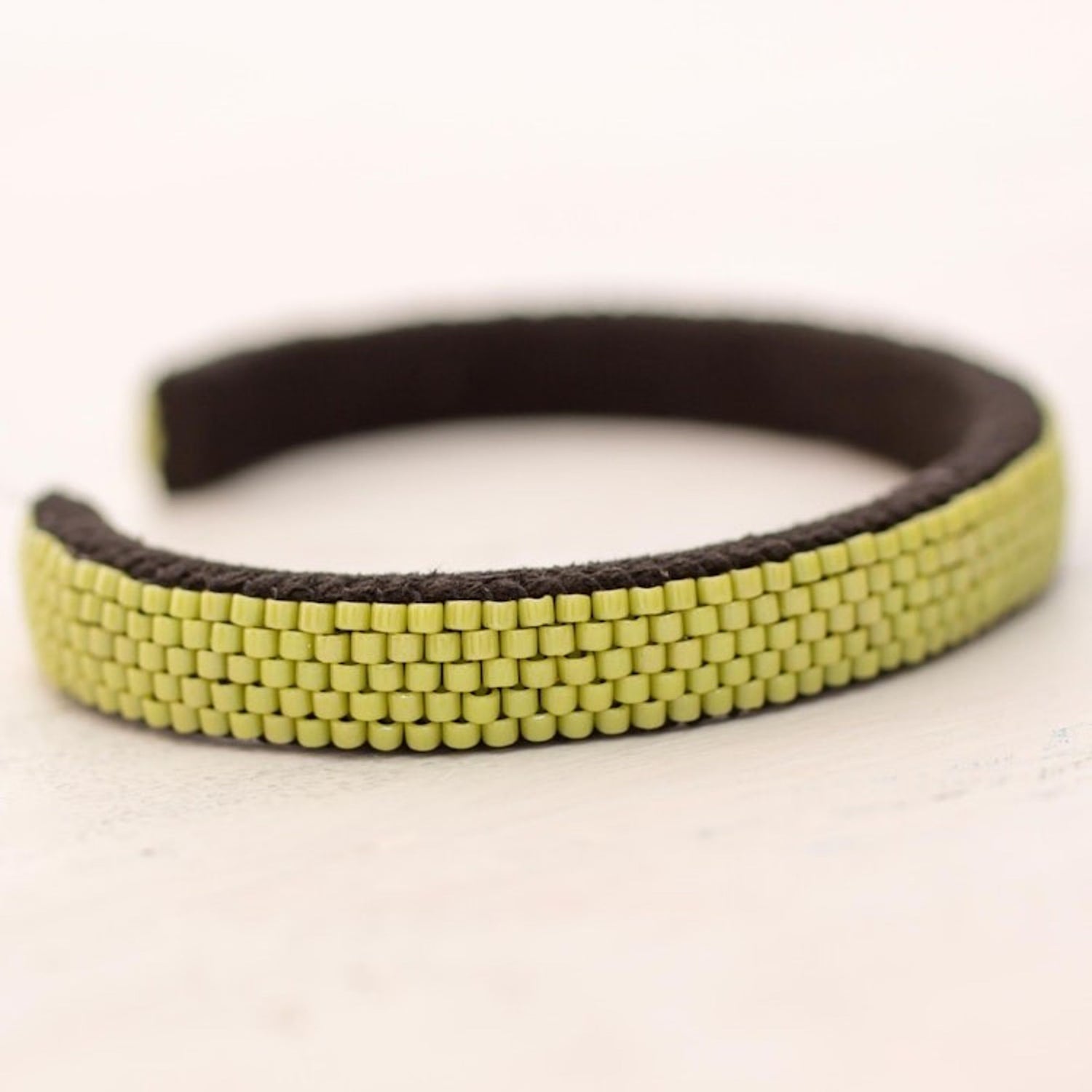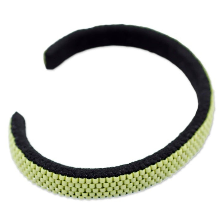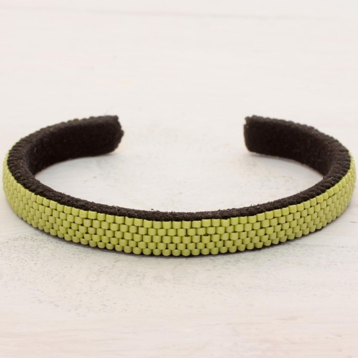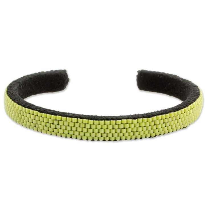 Glass Beaded Cuff Bracelet in Solid Avocado from El Salvador 'Beautiful Horizon in Avocado'