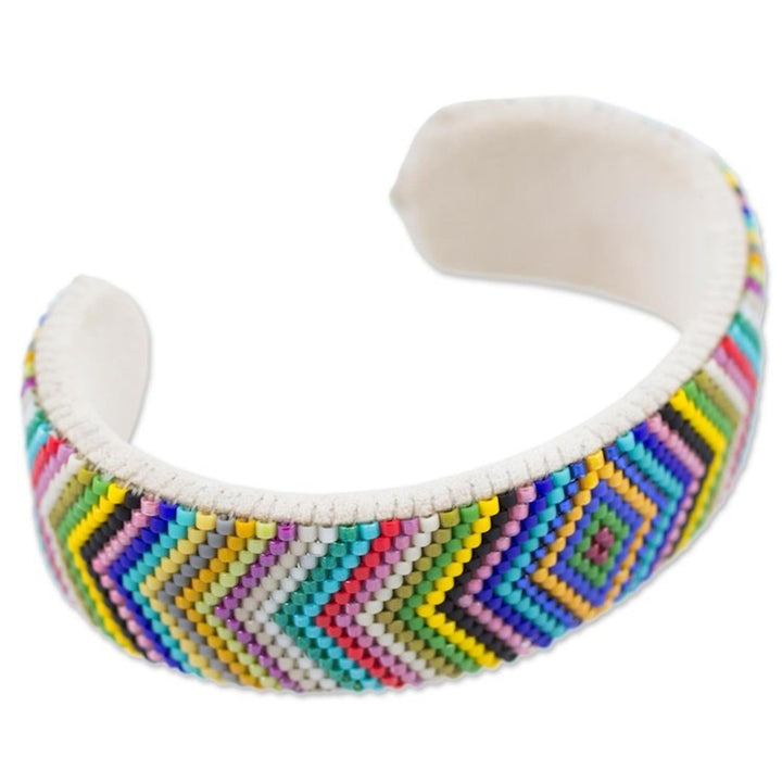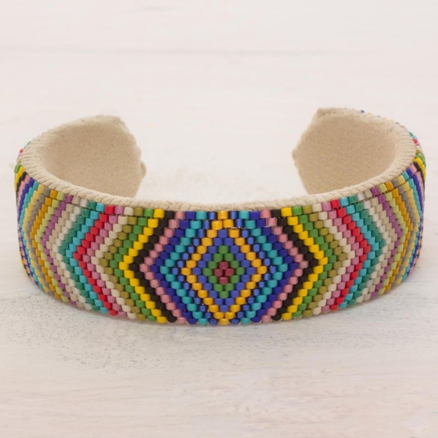 Glass Beaded Cuff Bracelet Rhombus Motif from El Salvador 'Sun's Path'