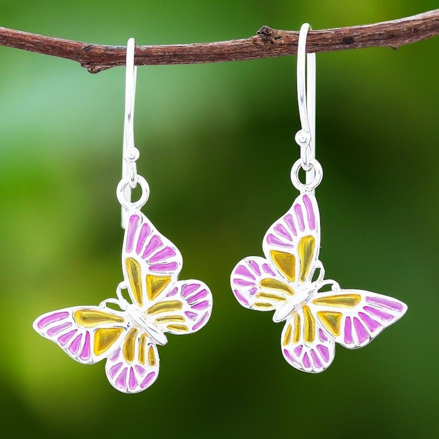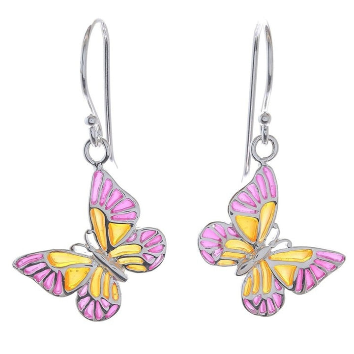 Pink and Yellow Sterling Silver Butterfly Dangle Earrings 'Sweet Butterflies'
