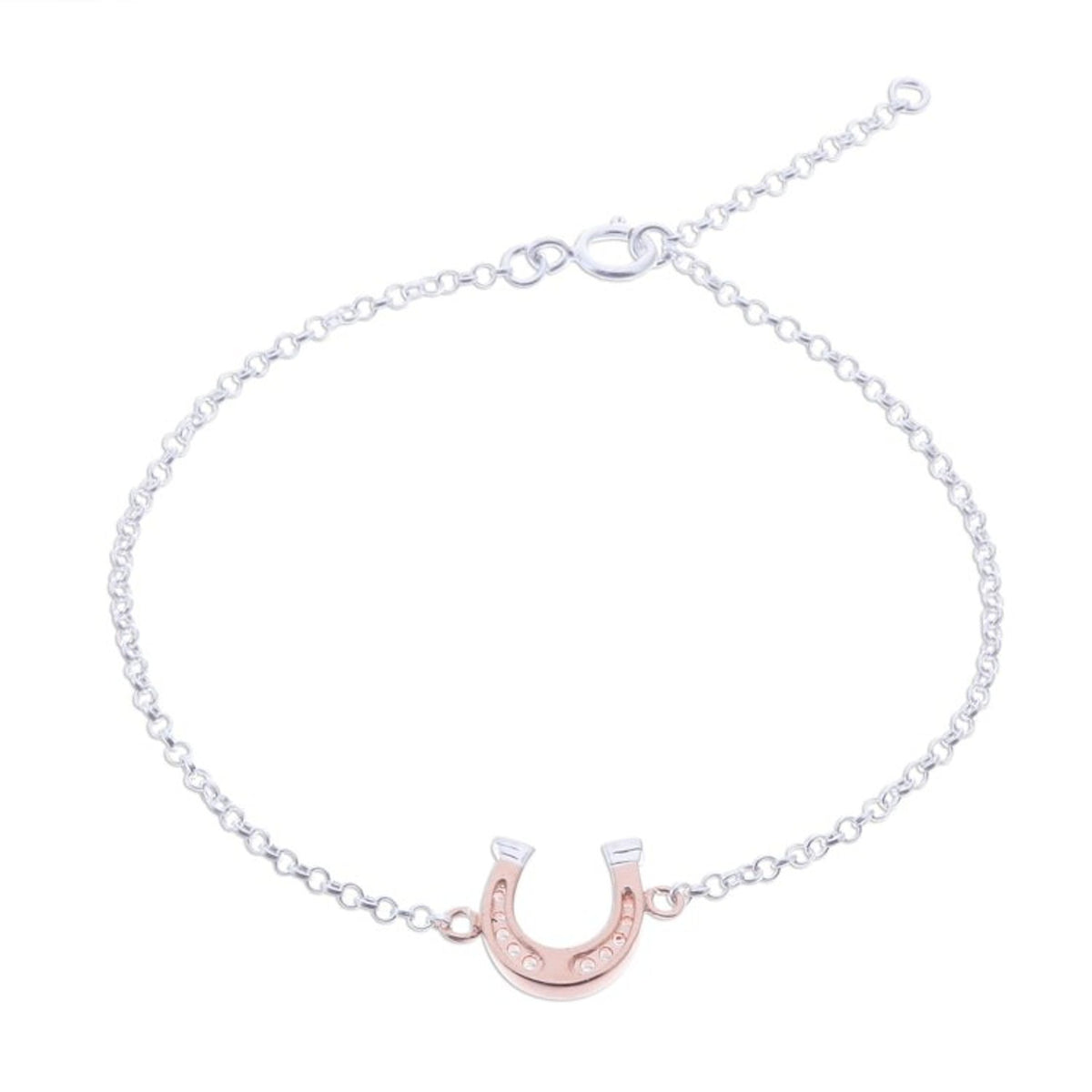 Rose Gold Accented Sterling Silver Horseshoe Bracelet 'Horseshoe Gleam'