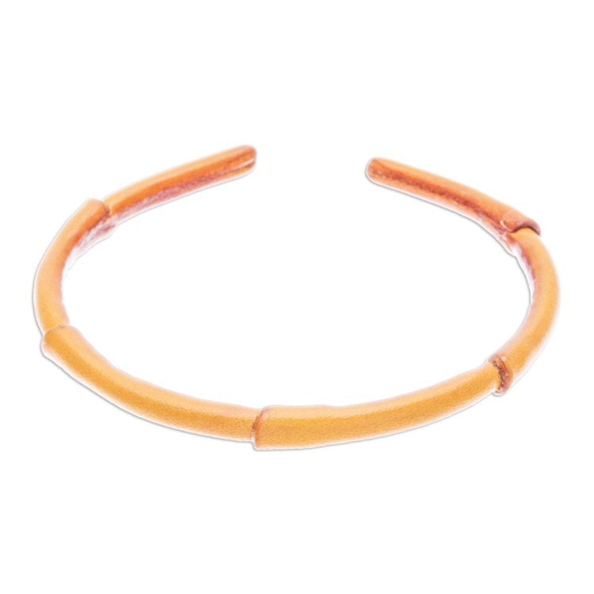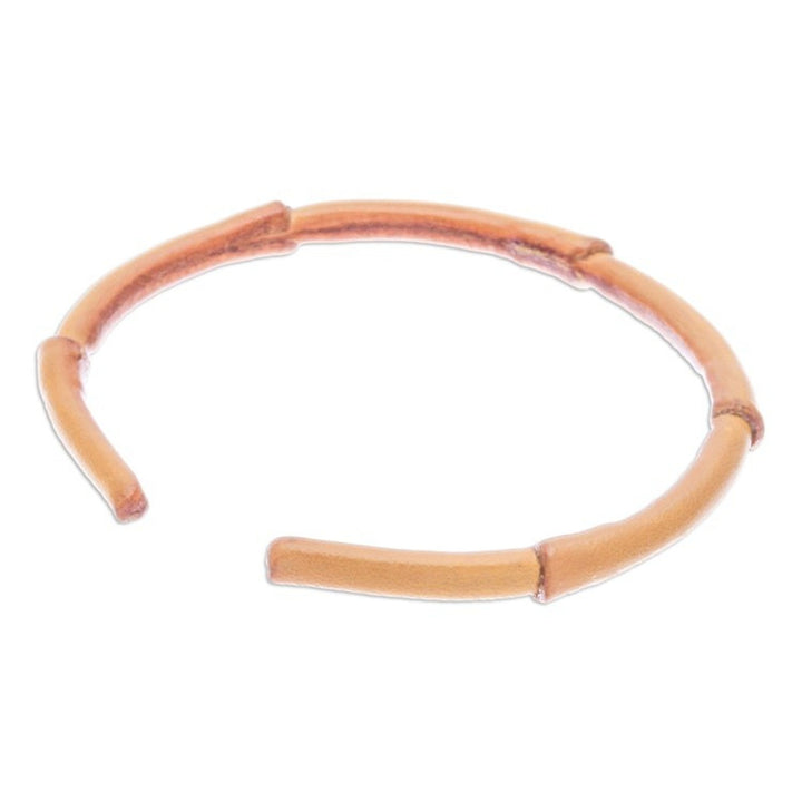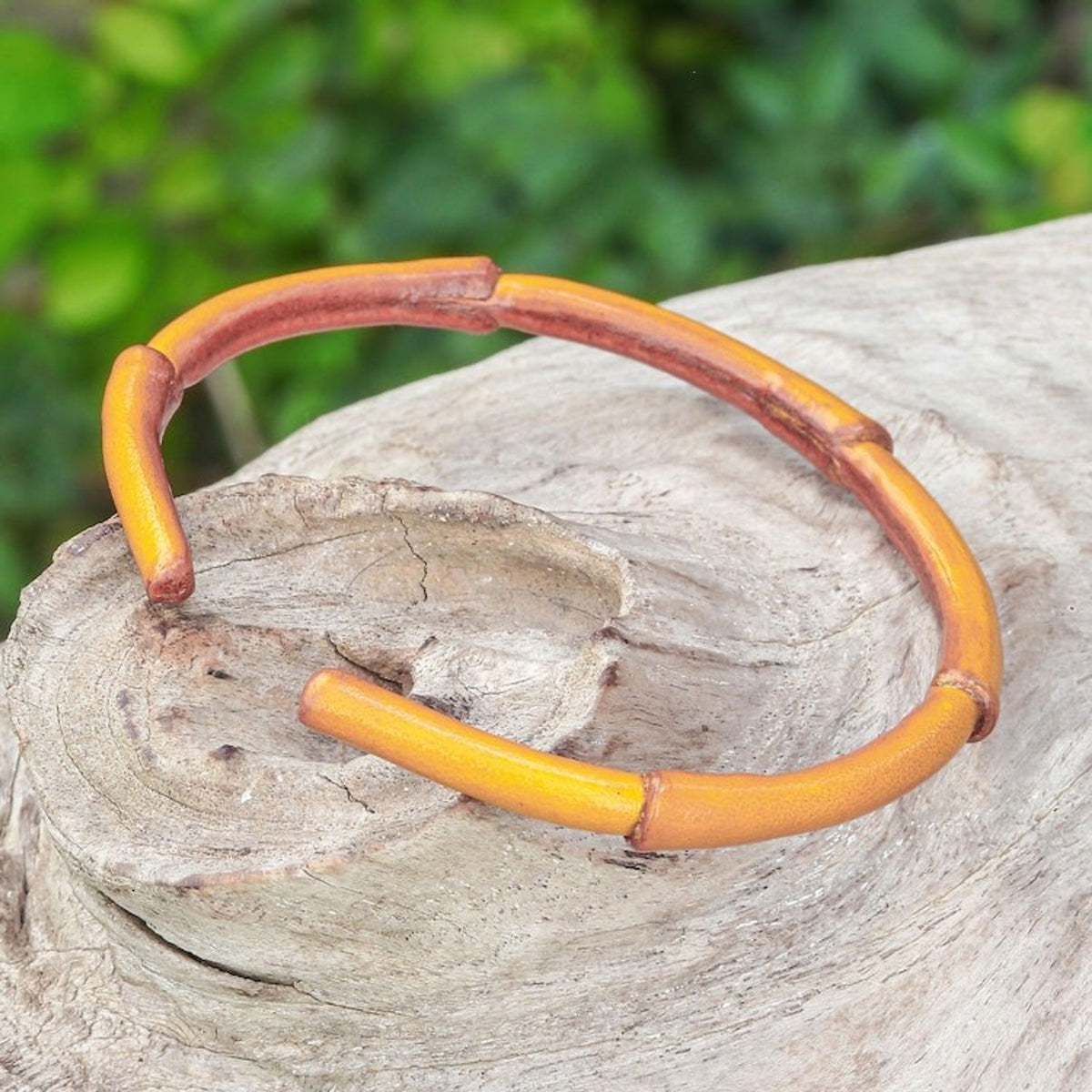 Bamboo-Inspired Adjustable Yellow Leather Cuff Bracelet 'Joyous Bamboo'