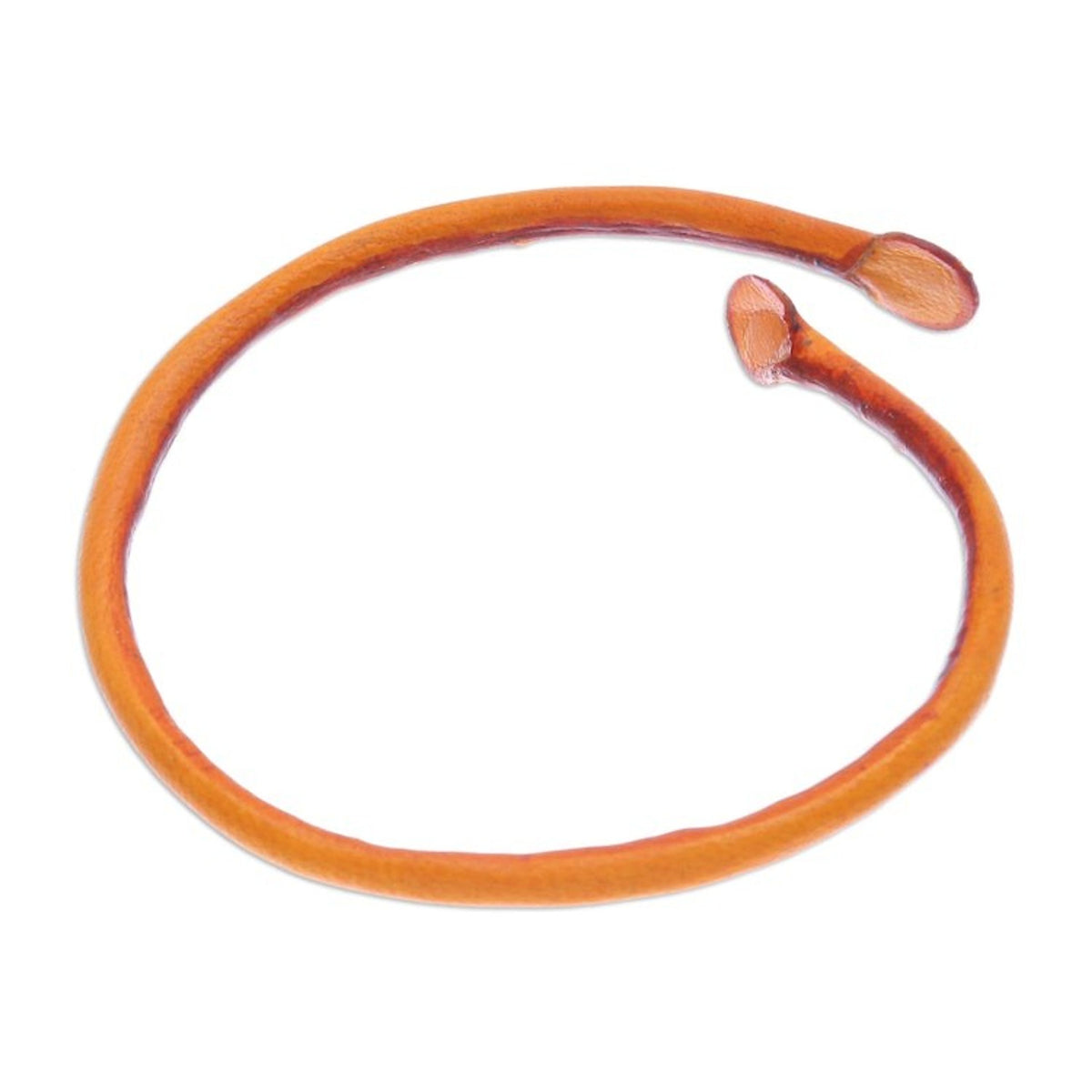 Thai Handmade Unisex Dyed Leather Cuff Bracelet in Orange 'Young Bud in Orange'