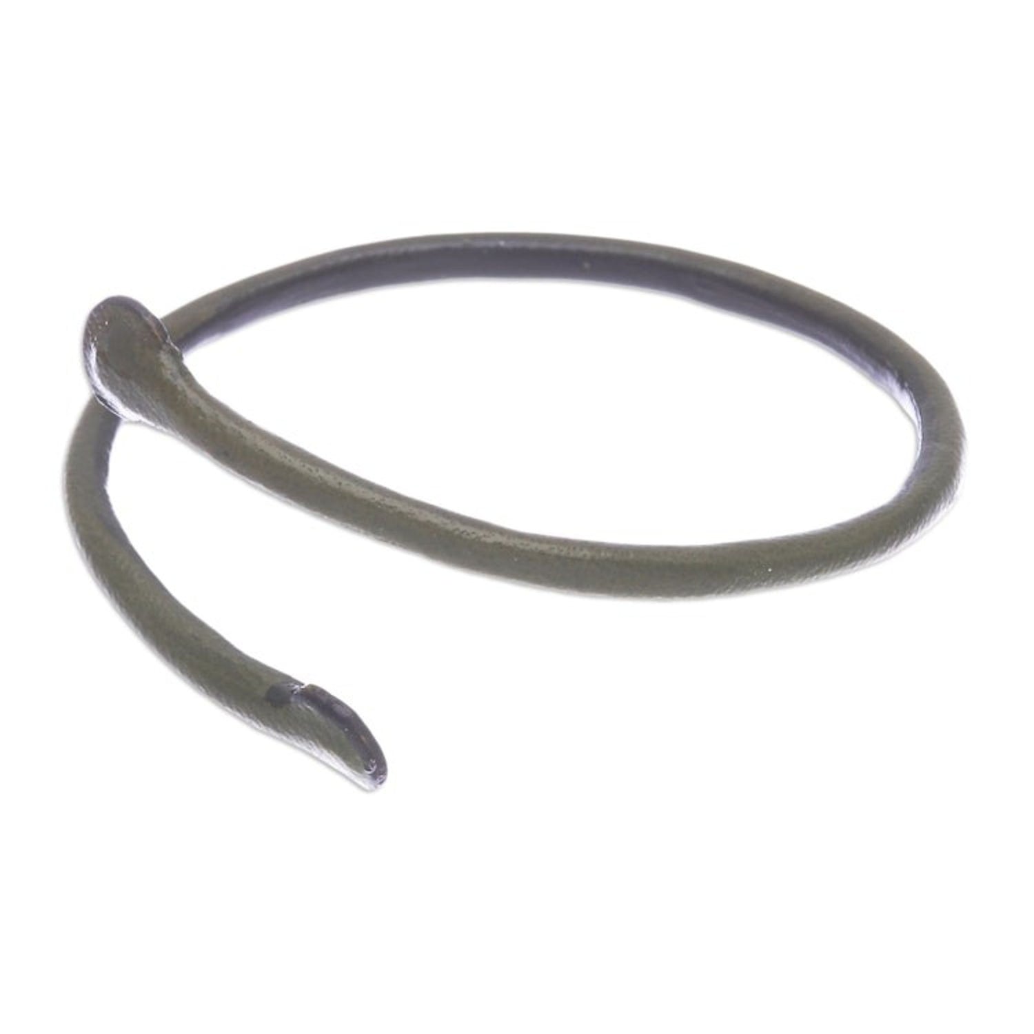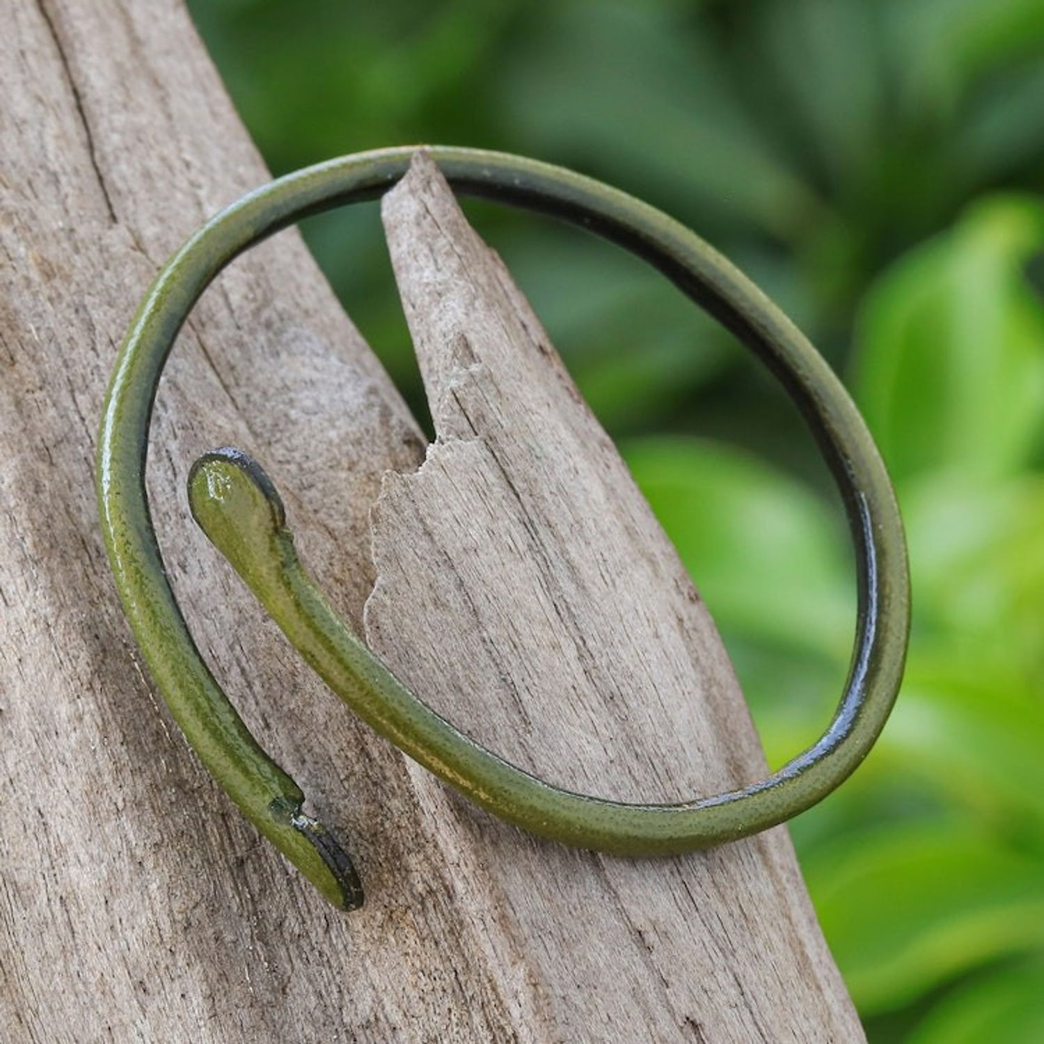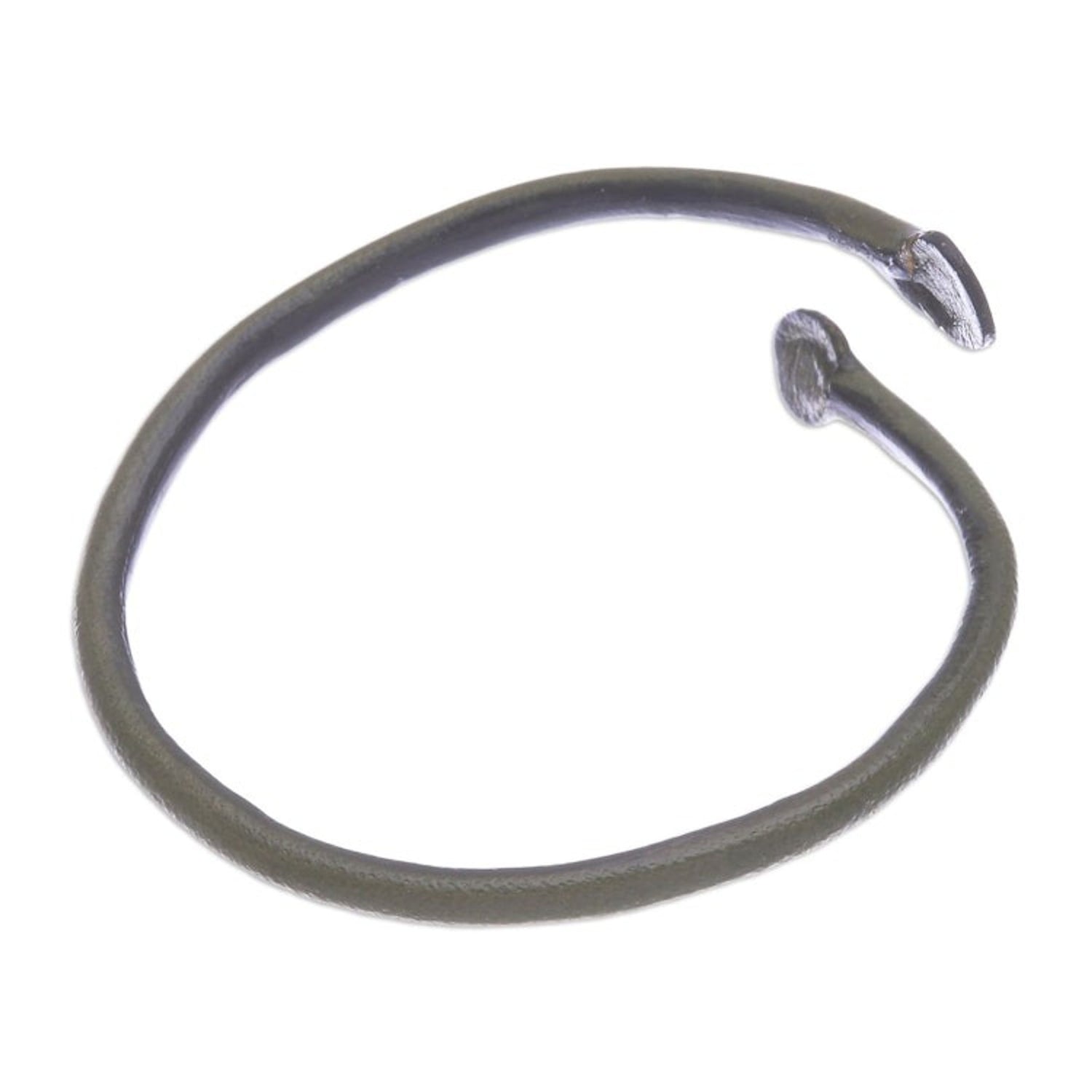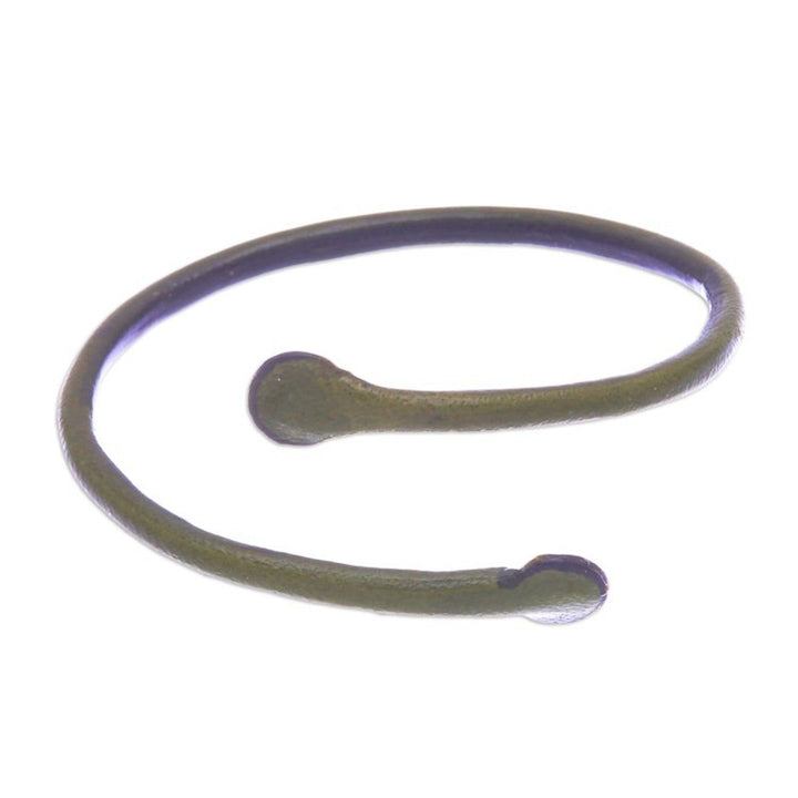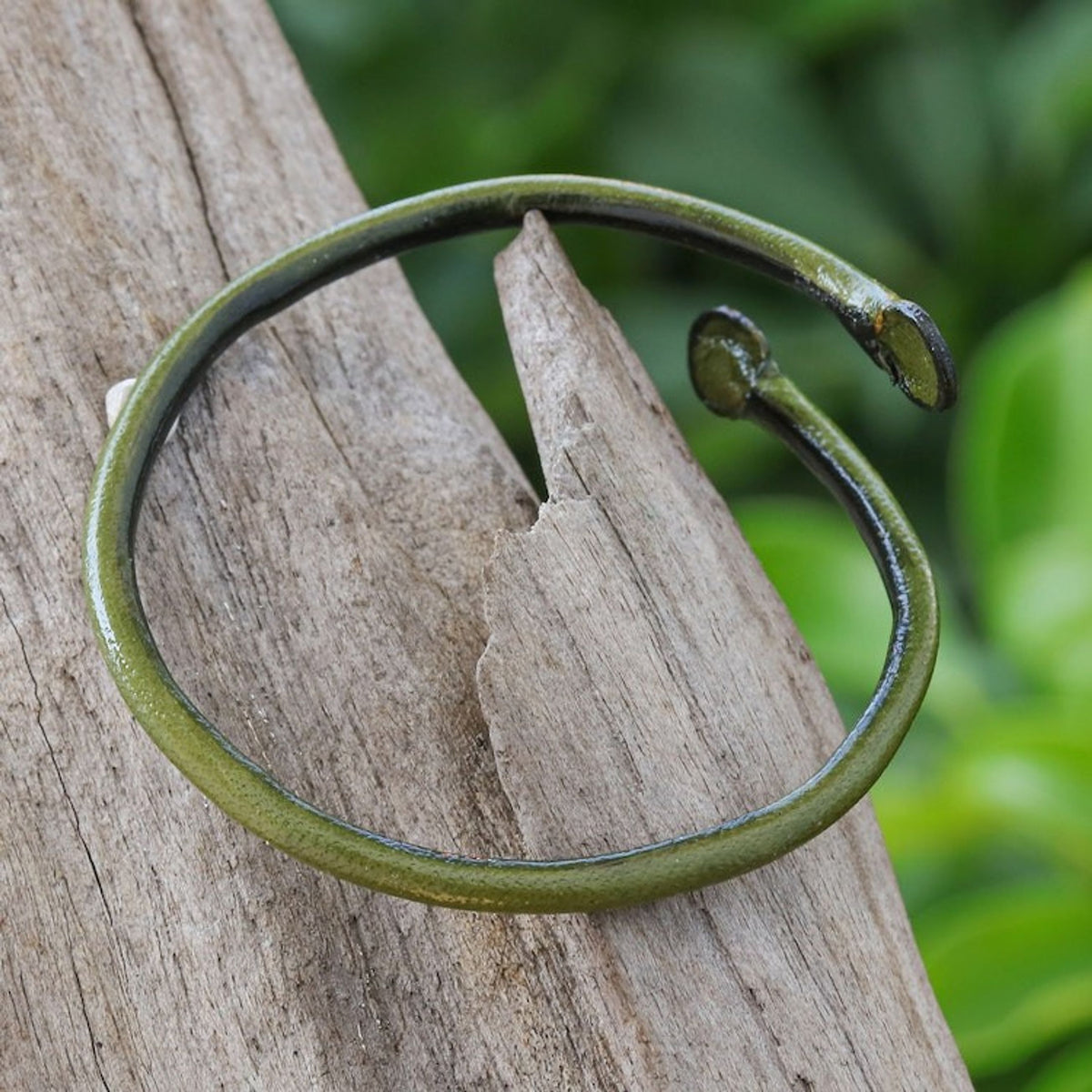 Unisex Green Dyed Leather Cuff Bracelet Handmade in Thailand 'Young Bud in Olive'