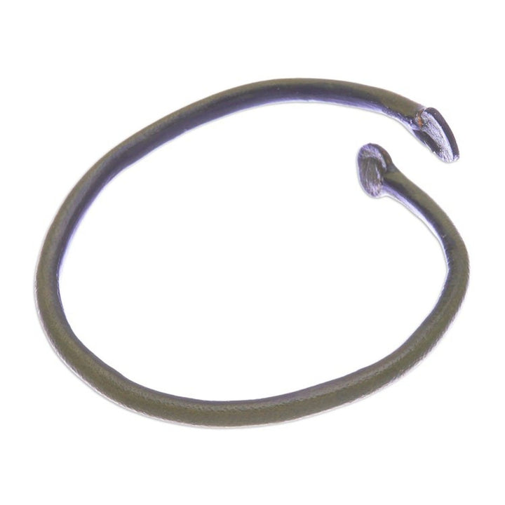This Unisex Green Dyed Leather Cuff Bracelet by Prasit Tangmahastitkul, also known as Chang, is a fabulous and unique accessory that breaks the mold. The cuff is handcrafted from vibrant olive-colored dyed leather, with round ends inspired by buds. The aluminum wire base allows it to be adjusted to any size, making it a versatile piece for both women and men. This cuff is perfect for those who want to stand out and add a touch of artistic flair to their look.