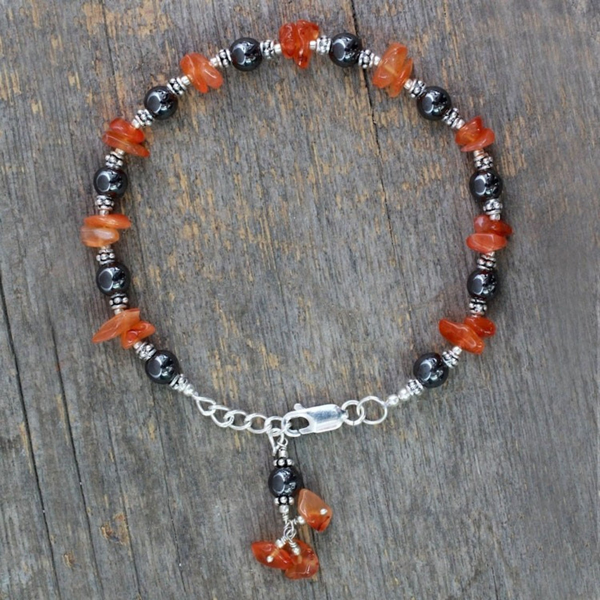 Artisan Crafted Silver Hematite and Carnelian Bracelet 'Night Fire'