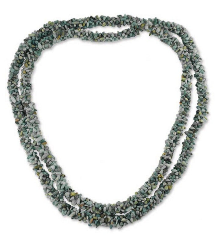 This Artisan Crafted Turquoise Long Beaded Necklace from India by Rituu Agarwal is an inspiring accessory that evokes the blue-green waters of the Indian Ocean. Crafted by hand, this long necklace features clusters of vibrant turquoise beads. The design is meant to be looped twice, offering a versatile and beautiful way to wear it. The necklace is a celebration of natural beauty and a testament to Rituu's dedication to her craft.