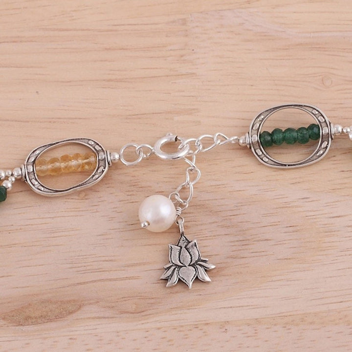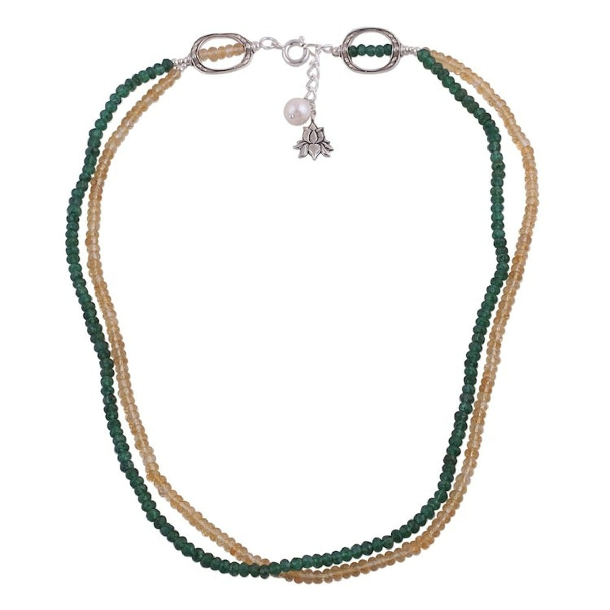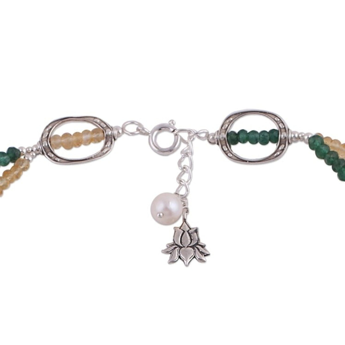 Aventurine Citrine and Cultured Pearl Beaded Necklace 'Lotus Mystique'
