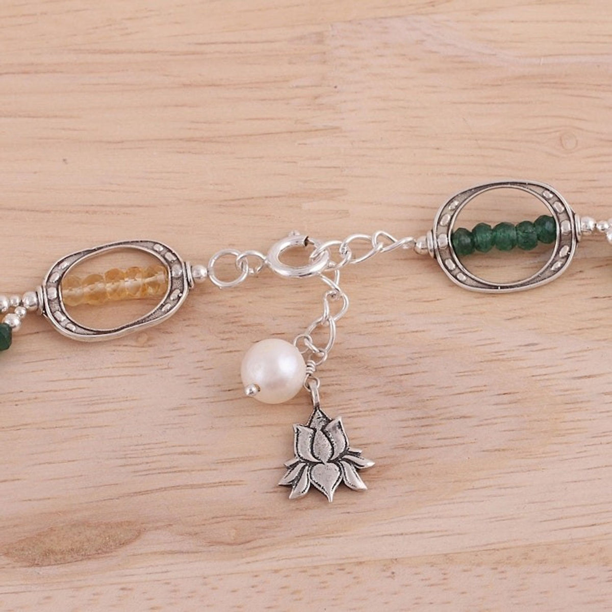 Handcrafted from 925 sterling silver, aventurine, citrine, and cultured freshwater pearl, this necklace measures 18.5 to 19.3 inches L and 0.6 inches W. The charm measures 0.8 inches L x 0.5 inches W and fastens with a spring ring clasp. Variations in color are to be expected.