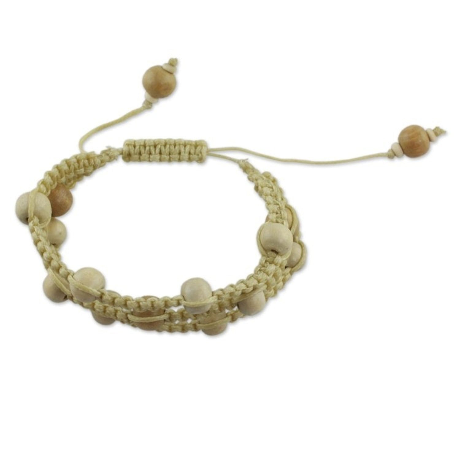 Fair Trade Macrame Wood Bead Shambhala-style Bracelet 'Peaceful Spirit'