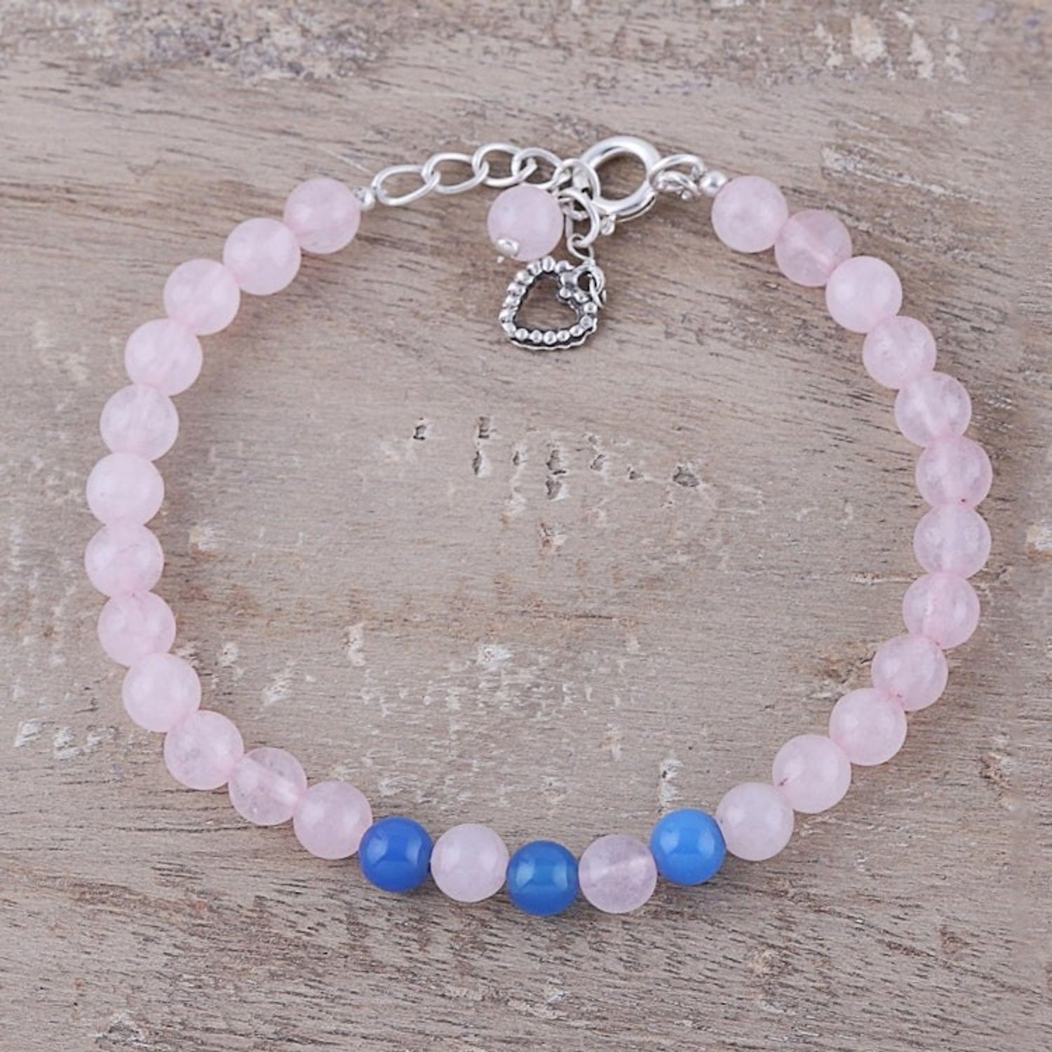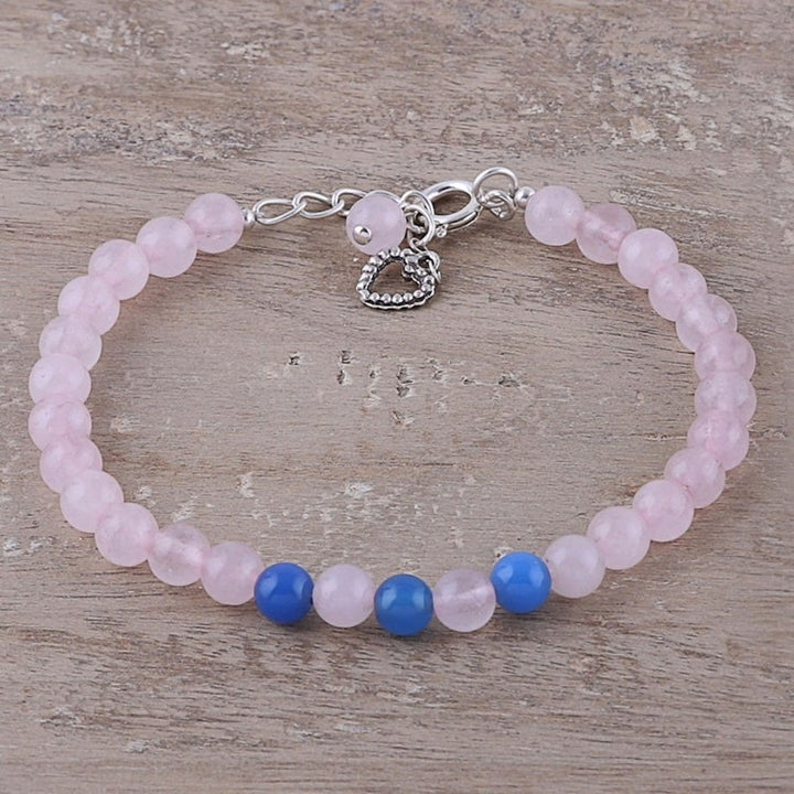 Rose Quartz and Chalcedony Beaded Bracelet from India 'Pretty Love'