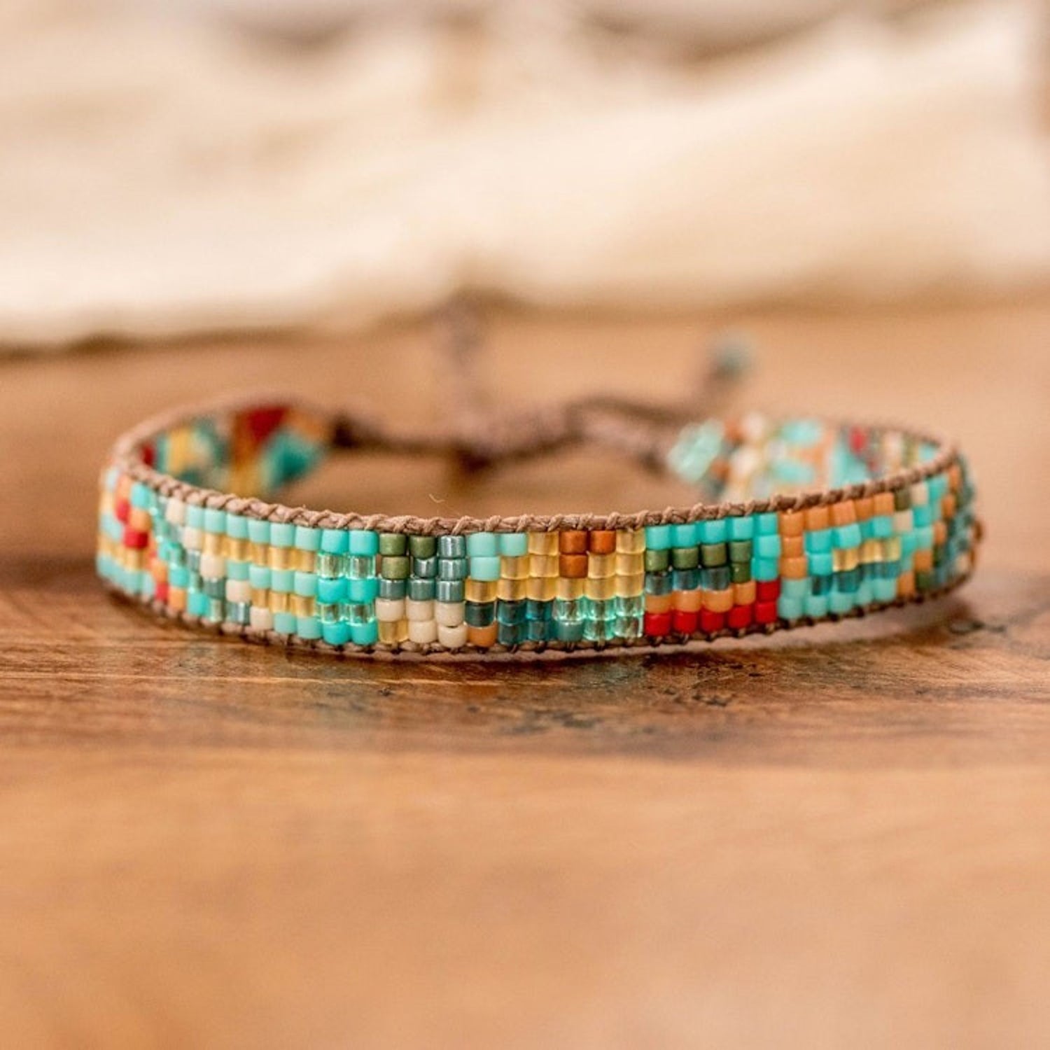 Colorful Beaded Wristband Bracelet Hand-Woven in Guatemala 'Fresh Breeze'