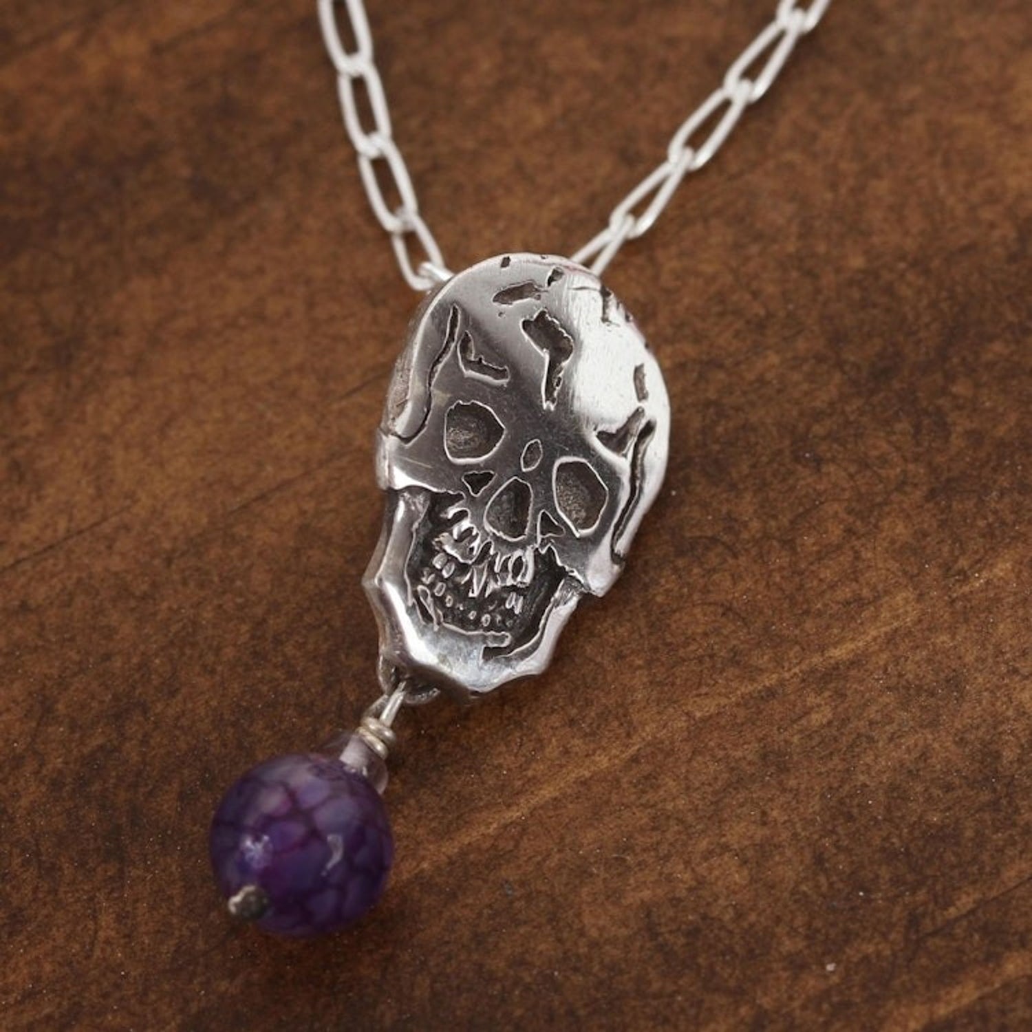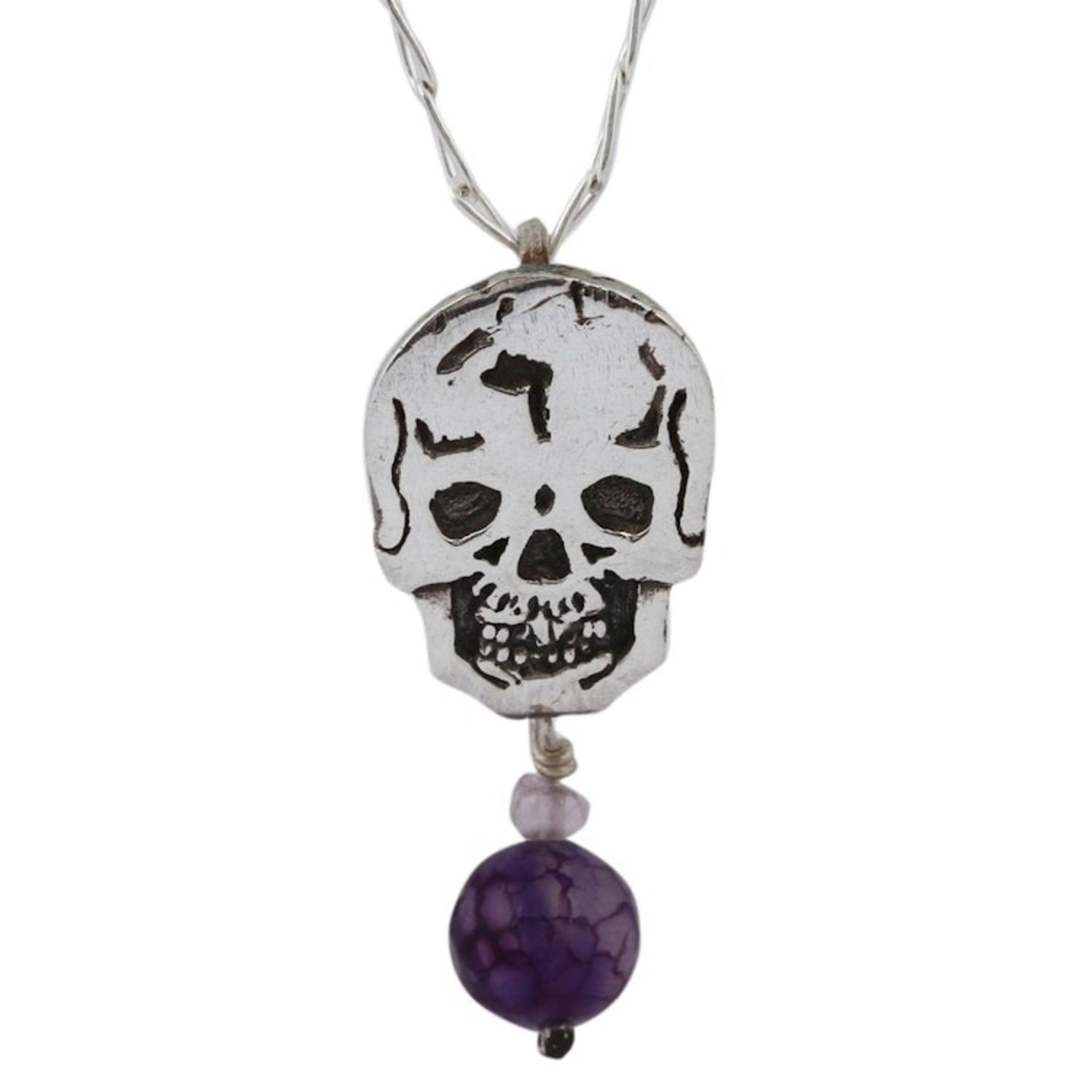 Agate and Amethyst Skull Pendant Necklace from Mexico 'Transition'