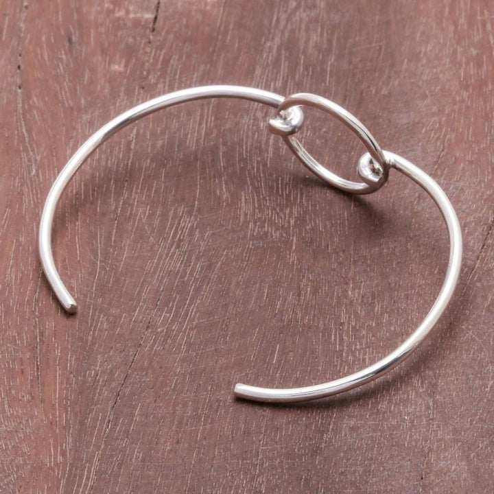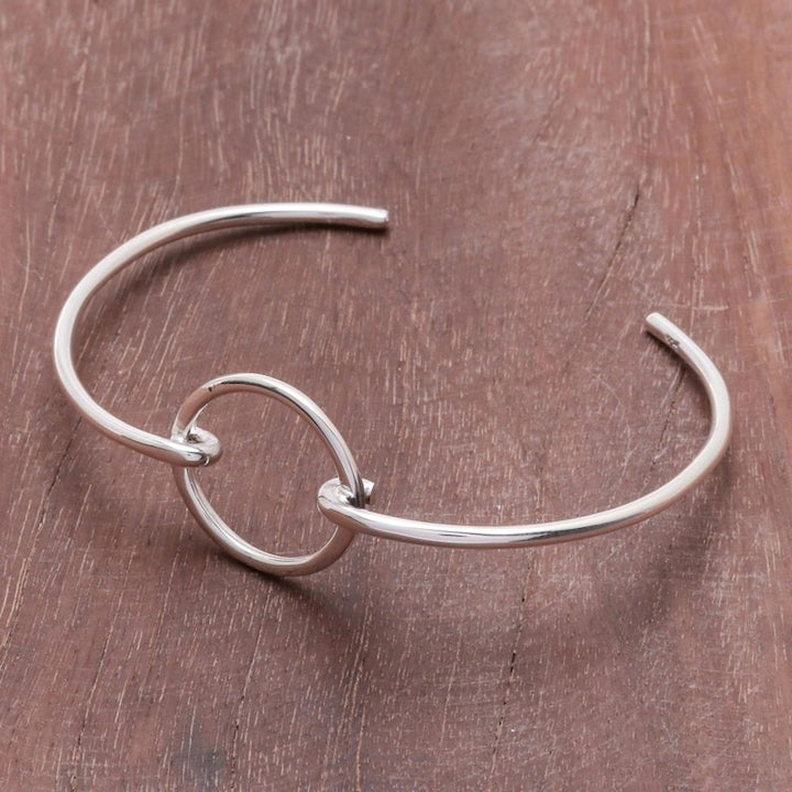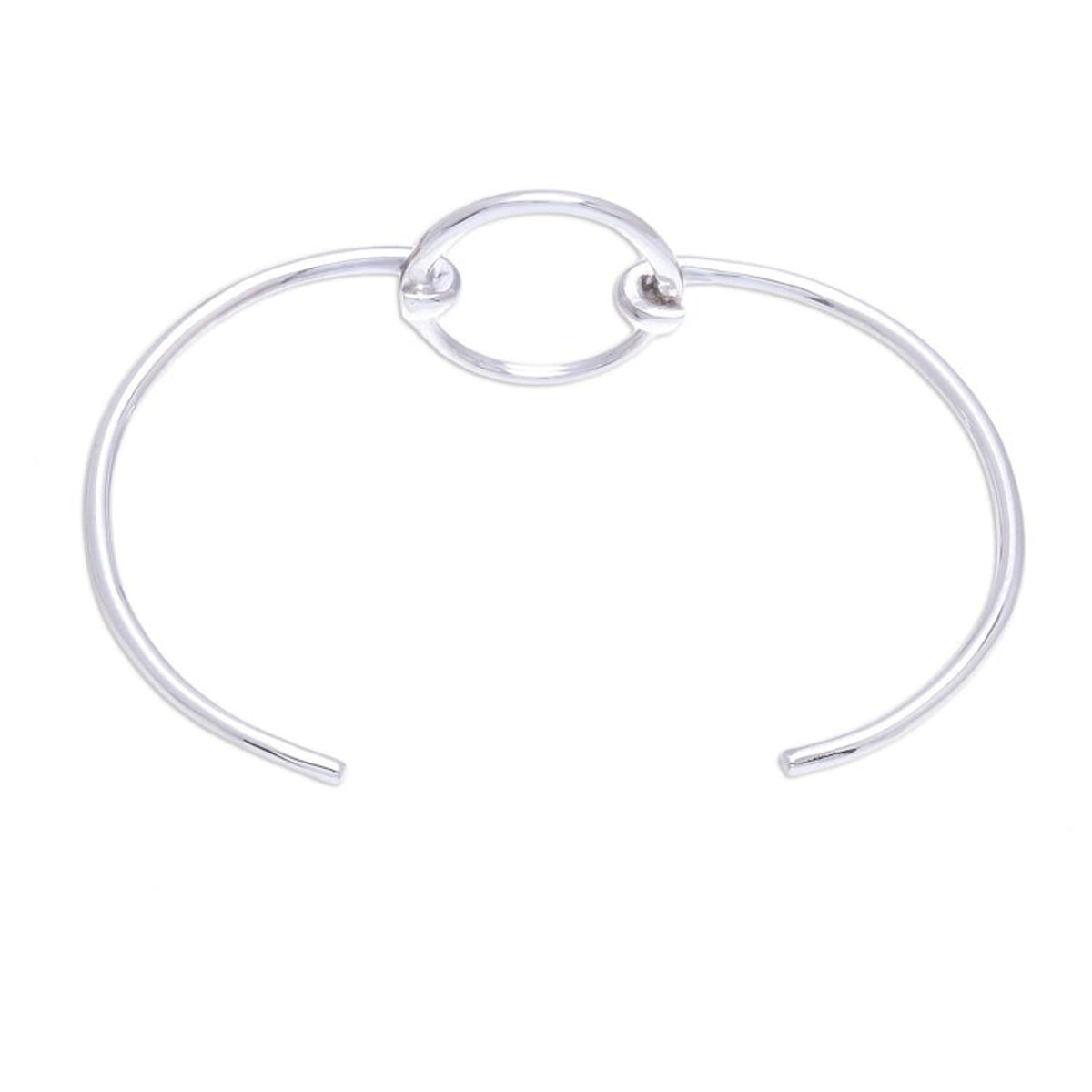 Modern Sterling Silver Cuff Bracelet with a Circular Pendant 'Circular Space'