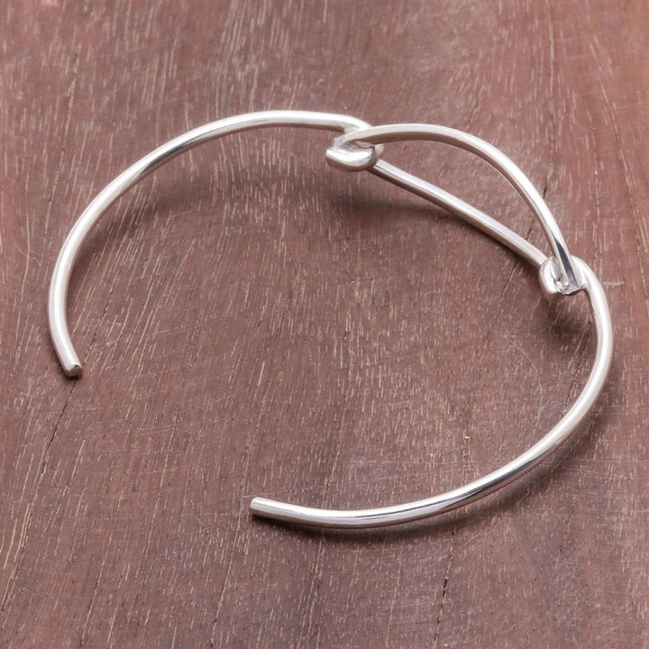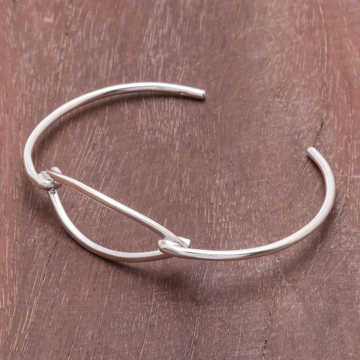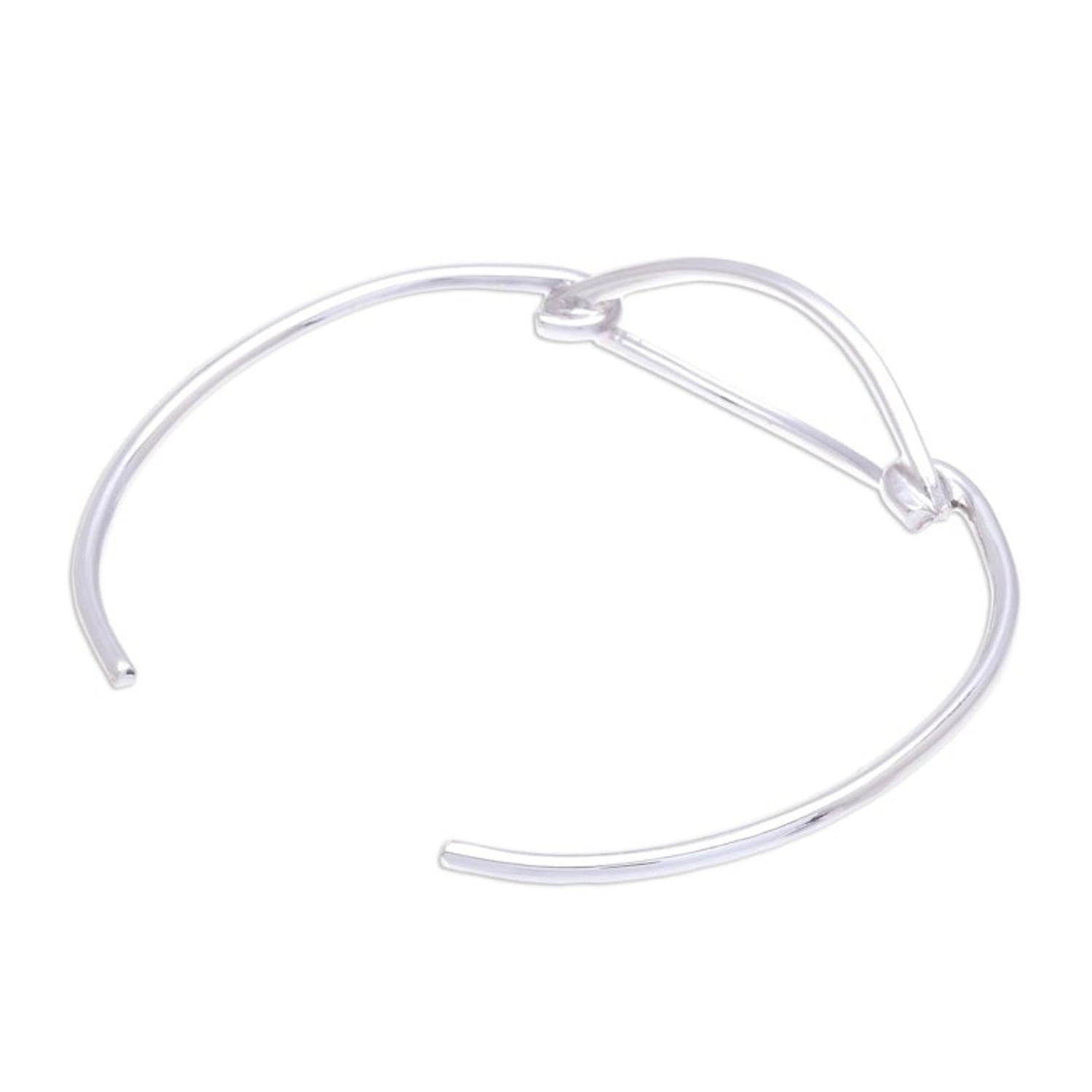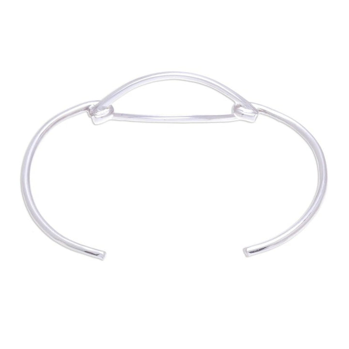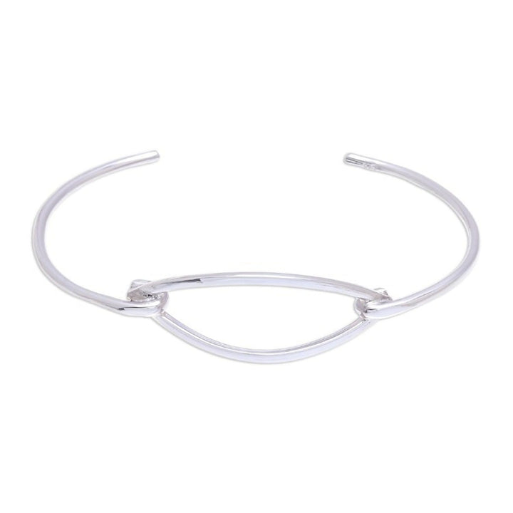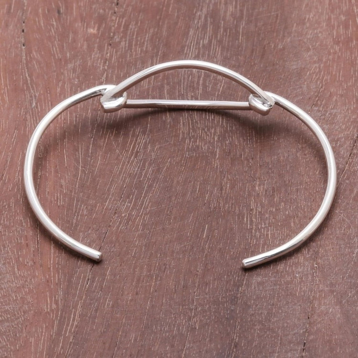 This Modern Sterling Silver Cuff Bracelet with a Wide Pendant by Rudklow Patanaanunwong is a contemporary and sleek accessory. The cuff bracelet is crafted from sterling silver with a gleaming high-polish finish. At the center, a wide pendant with an open space creates a modern and clean design that is perfect for a minimalist look.