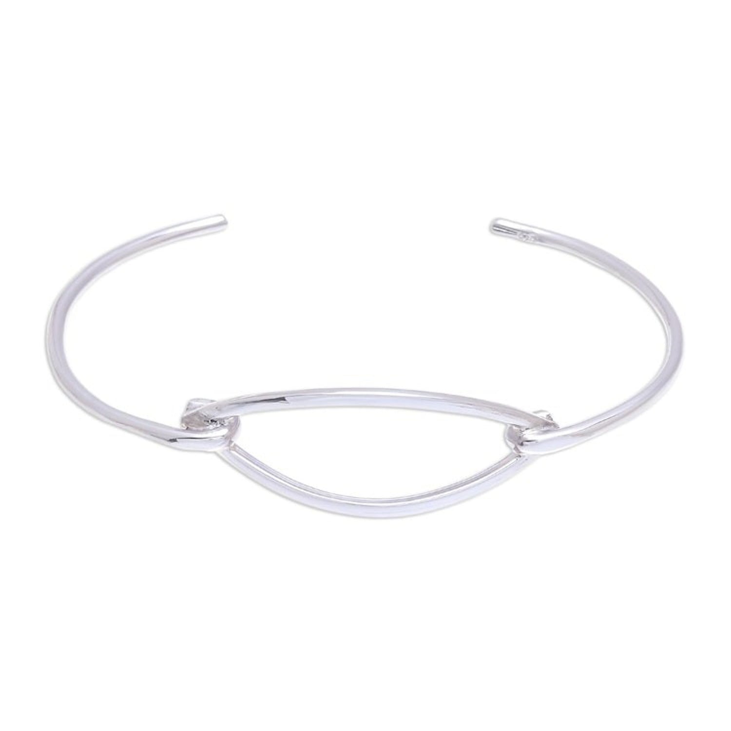 Handcrafted from 925 sterling silver, this cuff bracelet measures 6 inches L (end to end) and 2 mm W. The pendant measures 0.6 inches L x 1.4 inches W. It has a high polish finish.