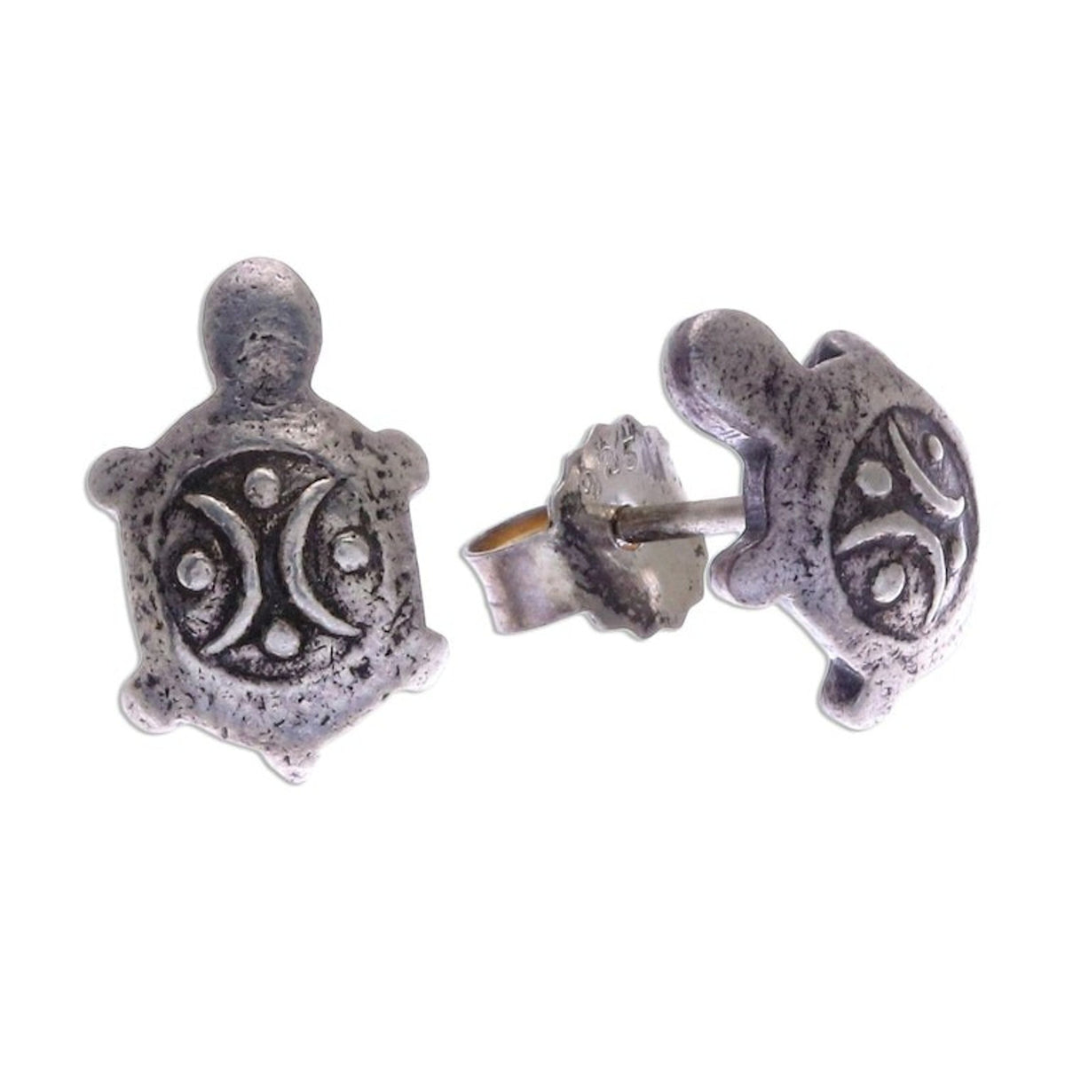 Cute 950 Silver Turtle Stud Earrings 'Thai Turtles'