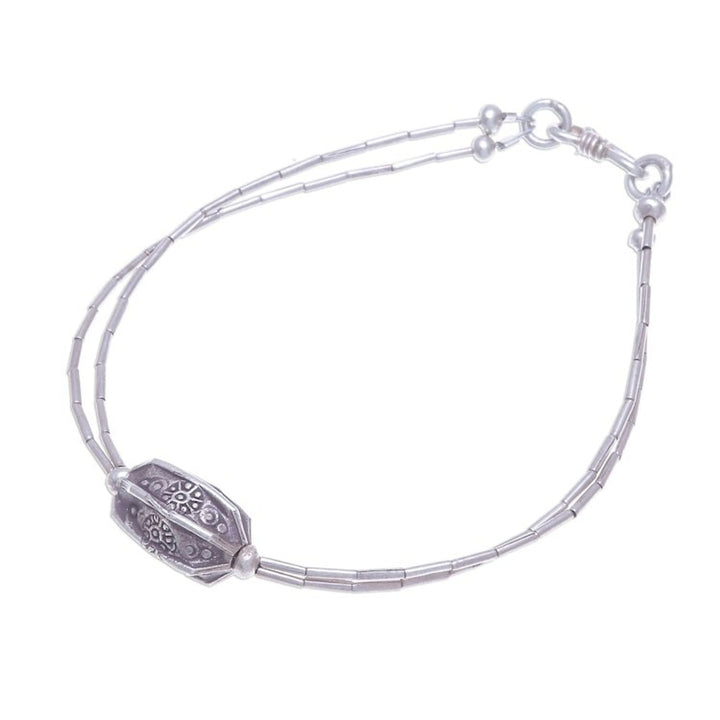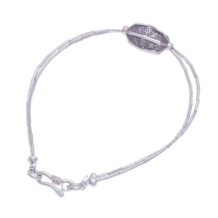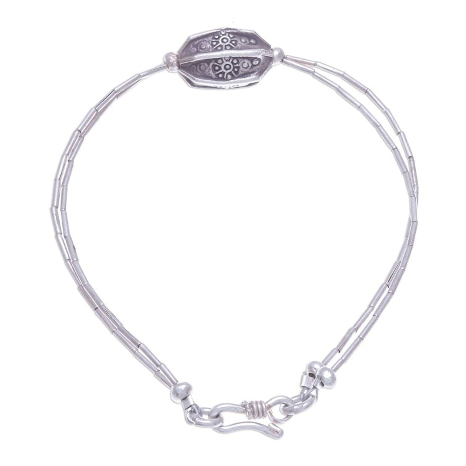 Karen Hill Tribe Beaded 950 Silver Pendant Bracelet 'Karen Pleat'