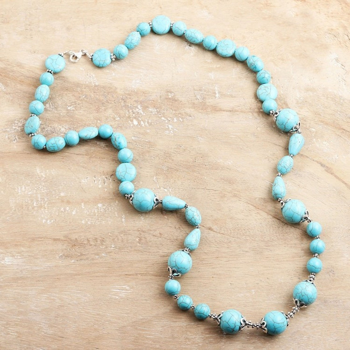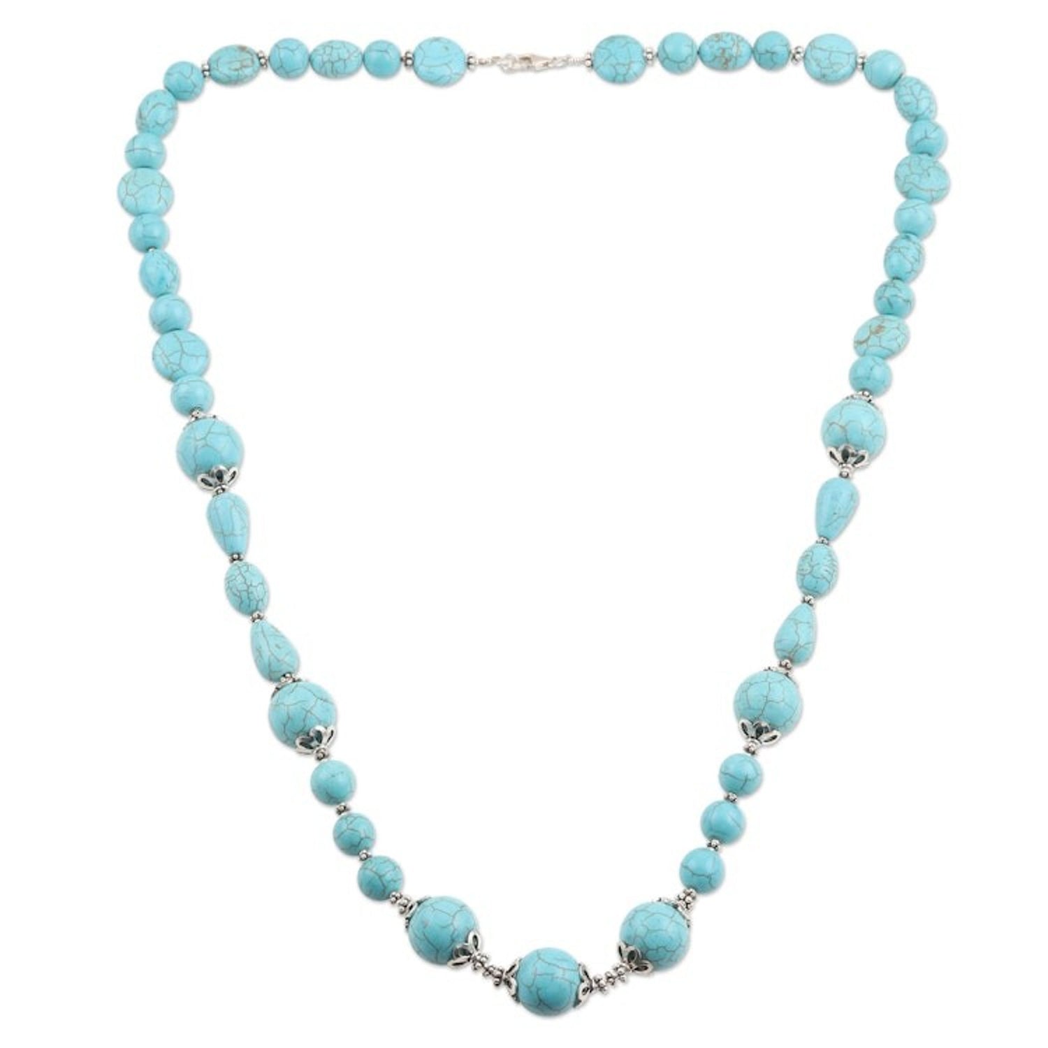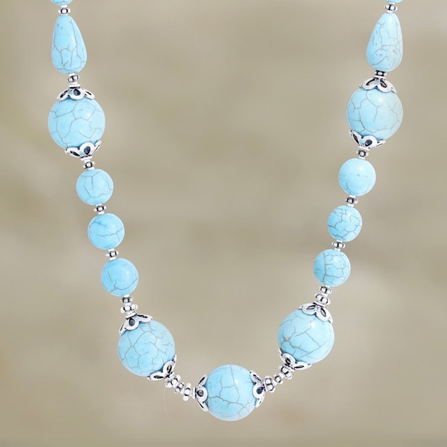 Hand Crafted Calcite Beaded Necklace from India 'Sky Chill'