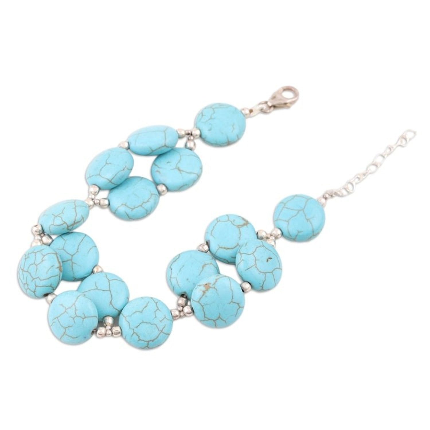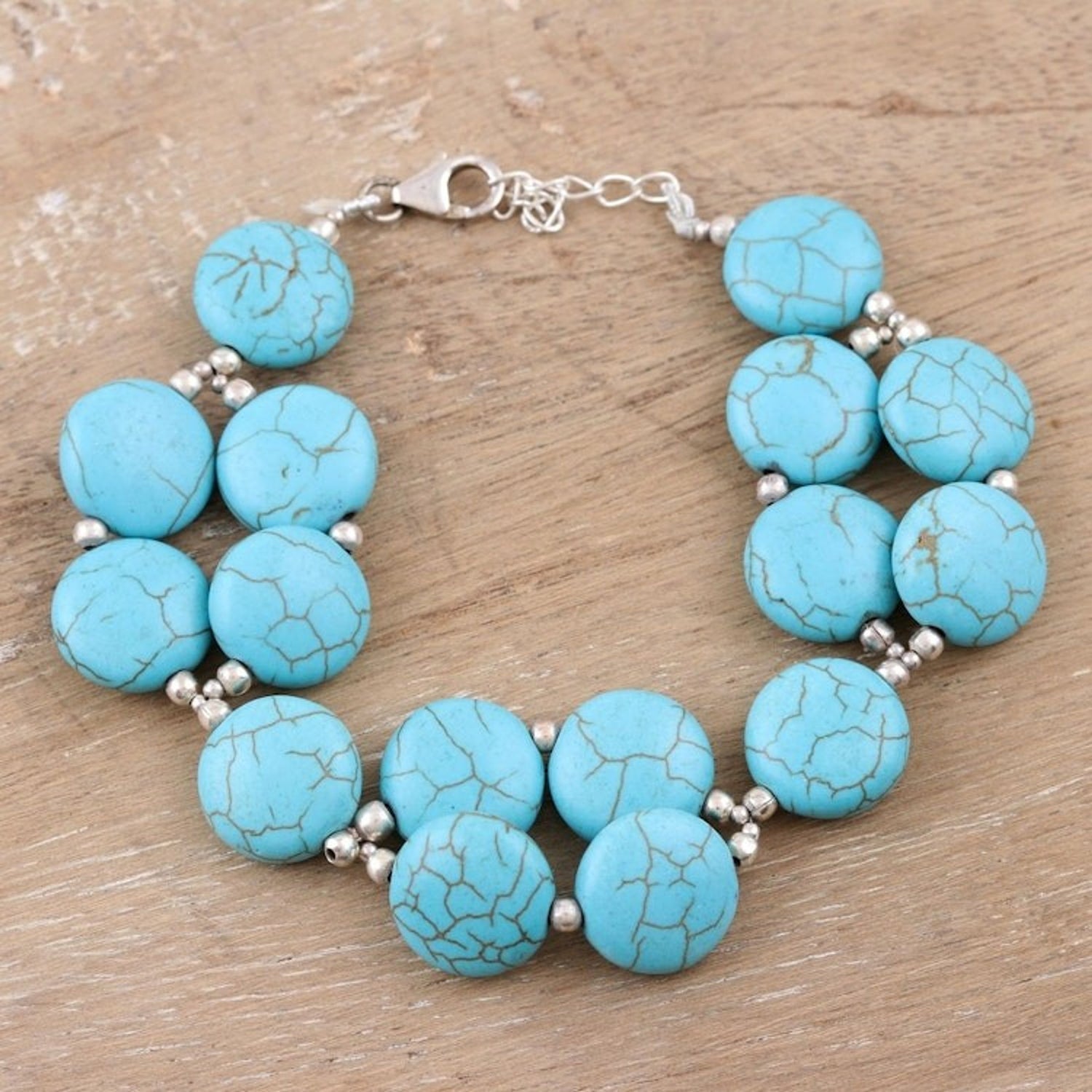 This Hand Crafted Sterling Silver and Calcite Beaded Bracelet by Shawn Martin is a beautiful and spirited accessory. The bracelet is handcrafted with sky blue calcite gems, accented with petite sterling silver beads. The combination finish and a shining lobster claw clasp make this bracelet a lovely piece that is sure to lift your spirits.