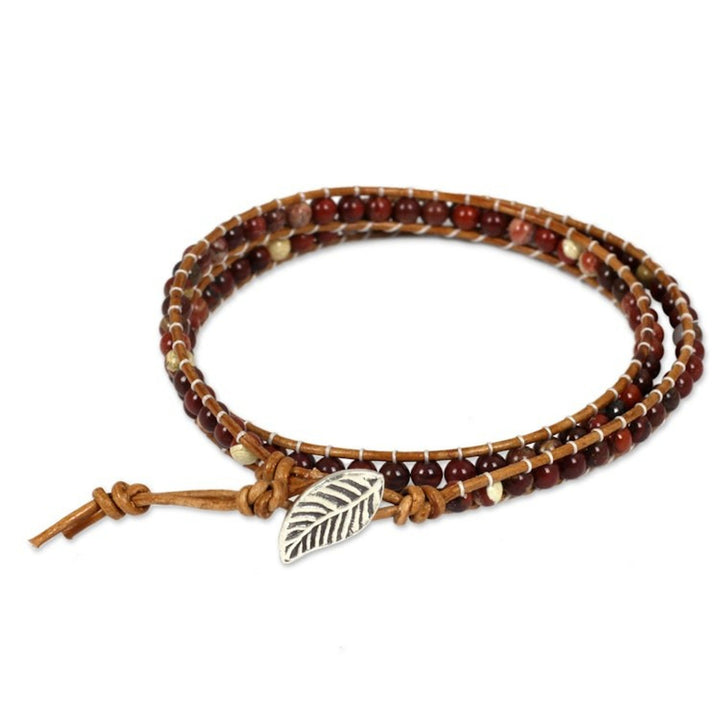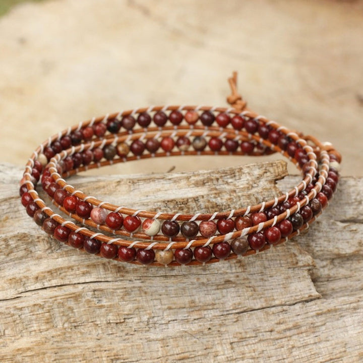 Beaded Wrap Bracelet with Red Jasper and Leather Cords 'Special Wine'