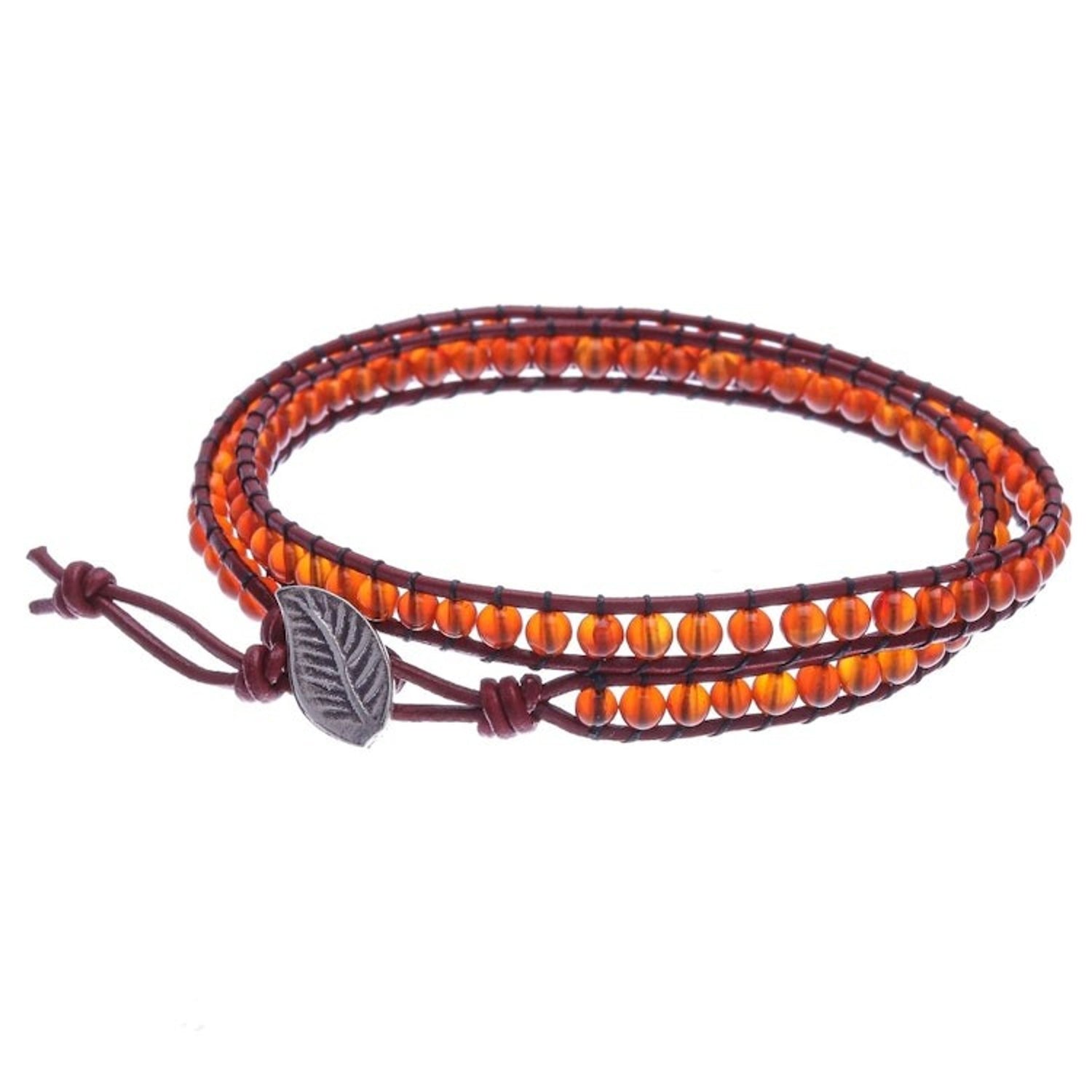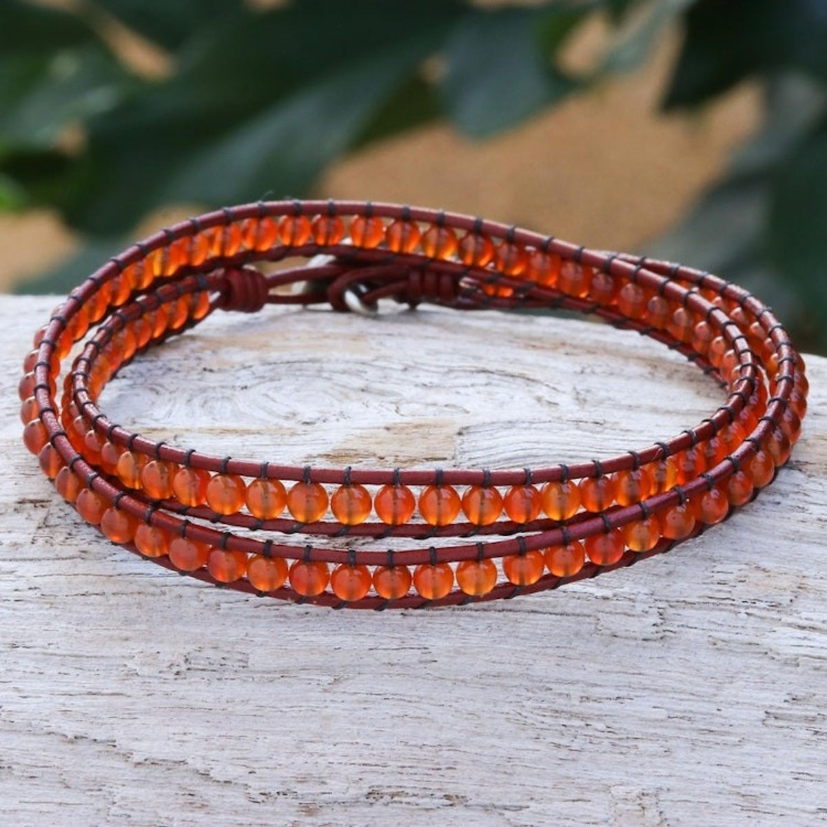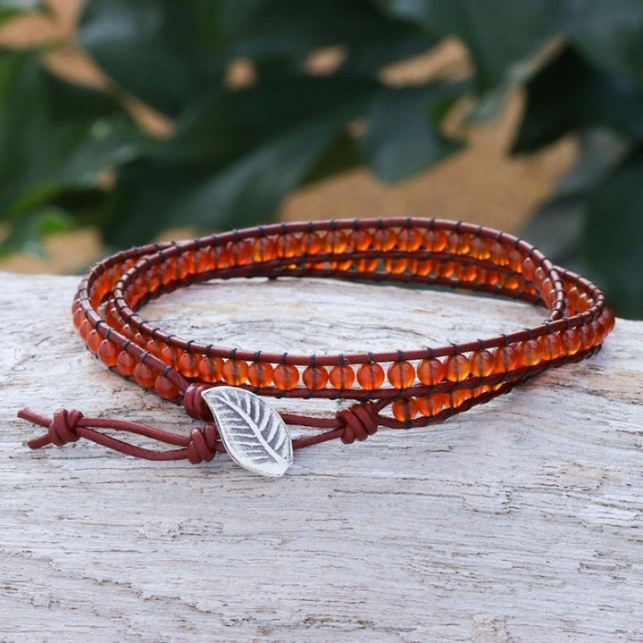 Carnelian and Leather Beaded Wrap Bracelet 'Inner Sunbeam'