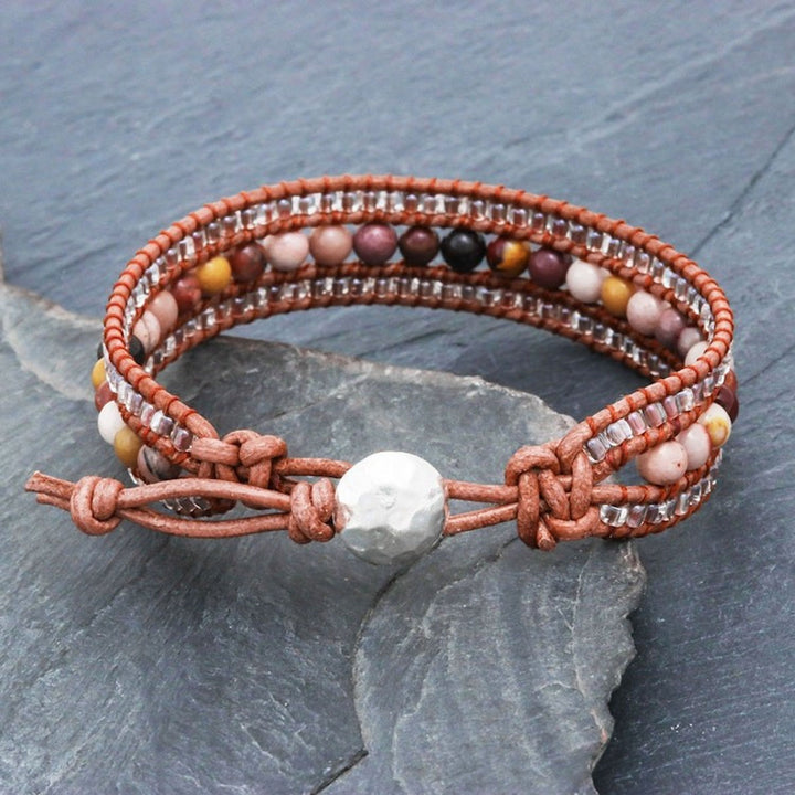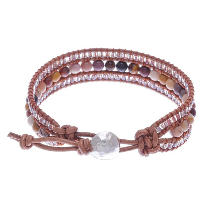 Handmade Leather Bracelet with Jasper and Glass Beads 'Sidetracked'