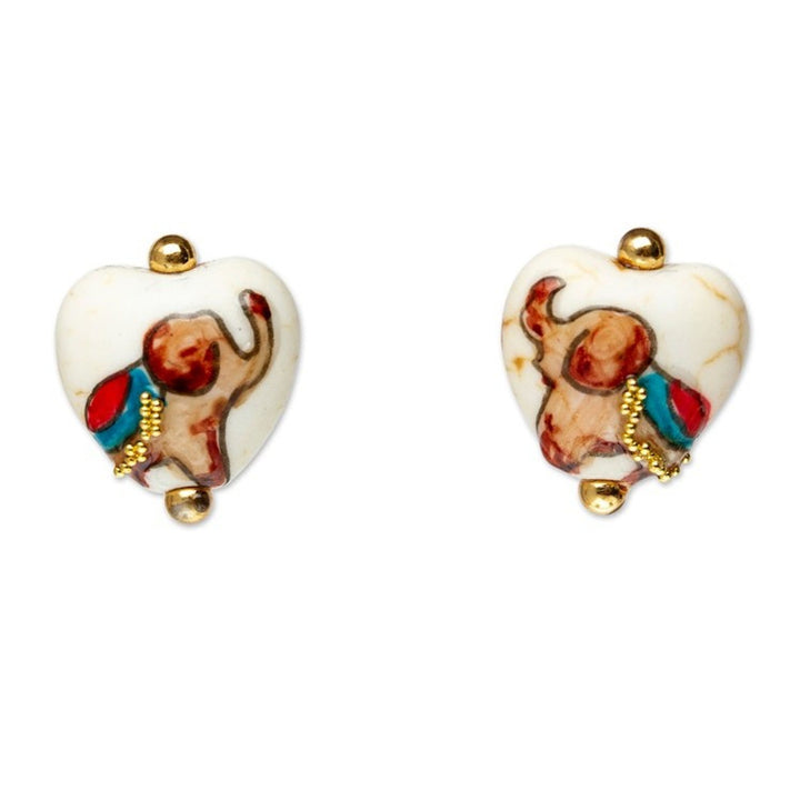 14k Gold-Accented Howlite Stud Earrings with Elephant Motifs 'Golden Trunks'