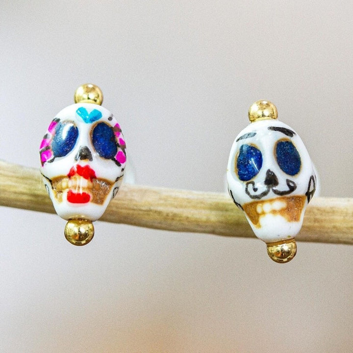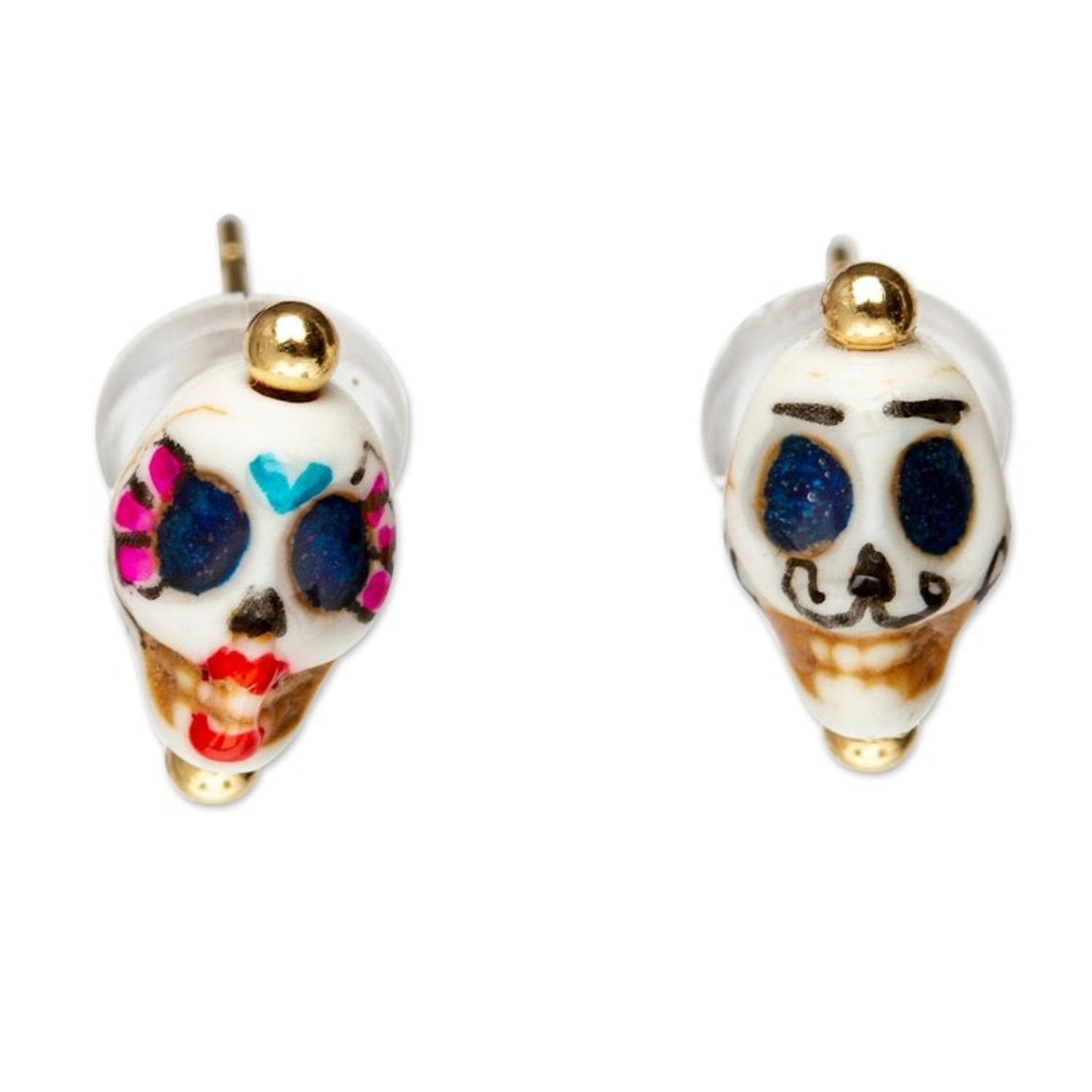 Handmade Day of The Dead 14k Gold-Accented Stud Earrings 'To the Afterlife'