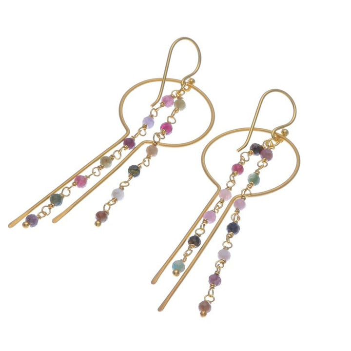 24k Gold-Plated Waterfall Earrings with Tourmaline Beads 'Creative Emotions'