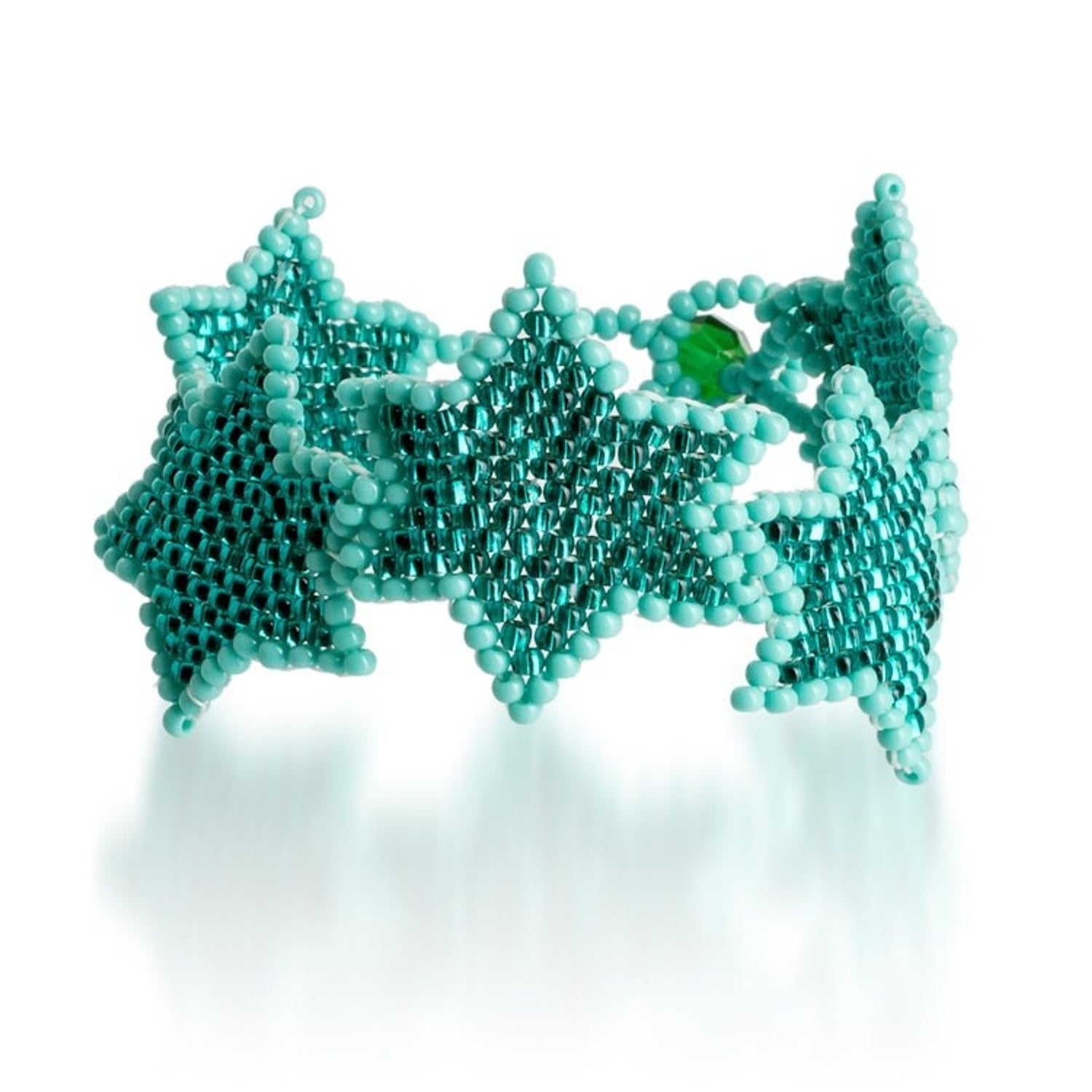 Aqua Turquoise Handcrafted Beaded Bracelet with Star Motif 'Turquoise Starlight'