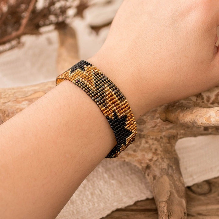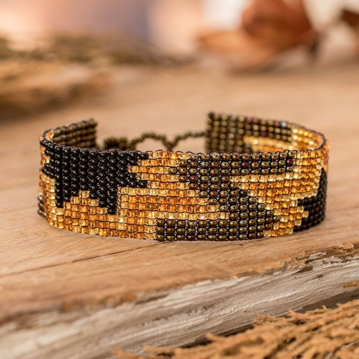 Artisan-Made Black and Bronze Star Glass Beaded Bracelet 'Heroic Blast'
