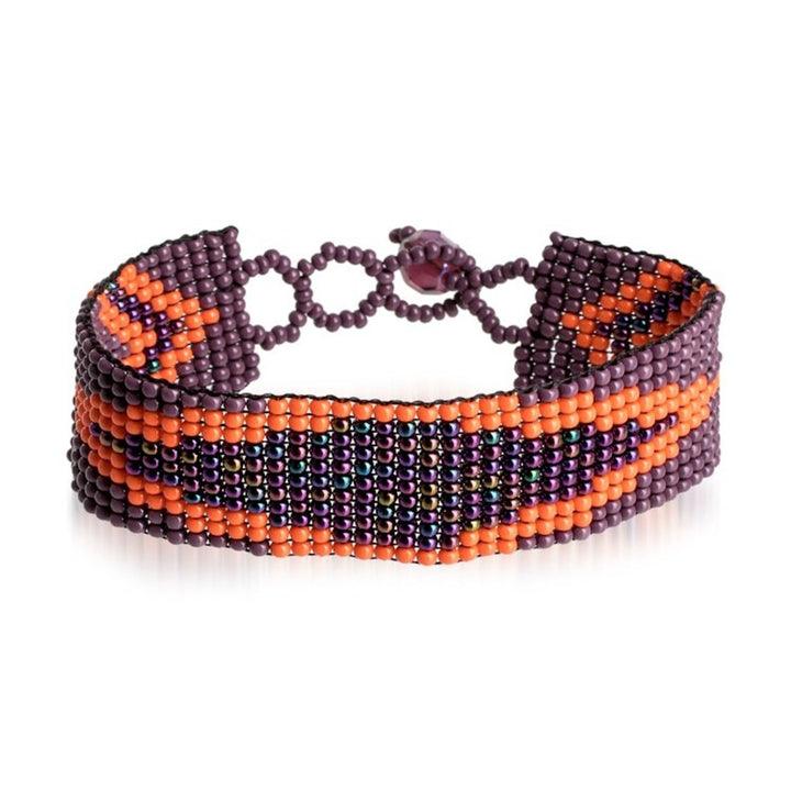 Guatemalan Purple and Orange Glass Beaded Wristband Bracelet 'Stylish Harmony'