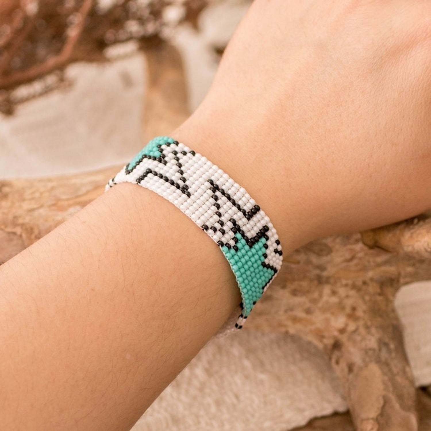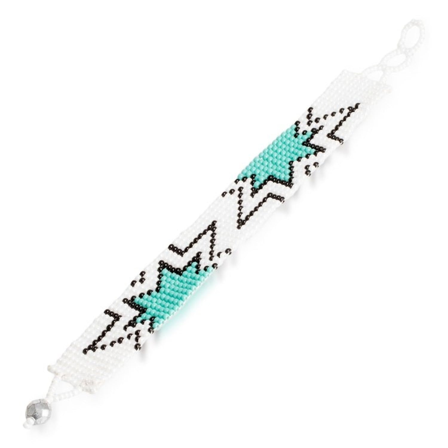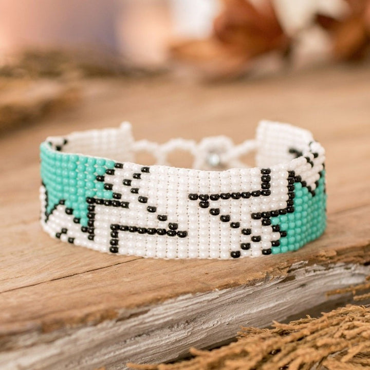 Mint Green and White Glass Beaded Star Wristband Bracelet 'Vital Blast'