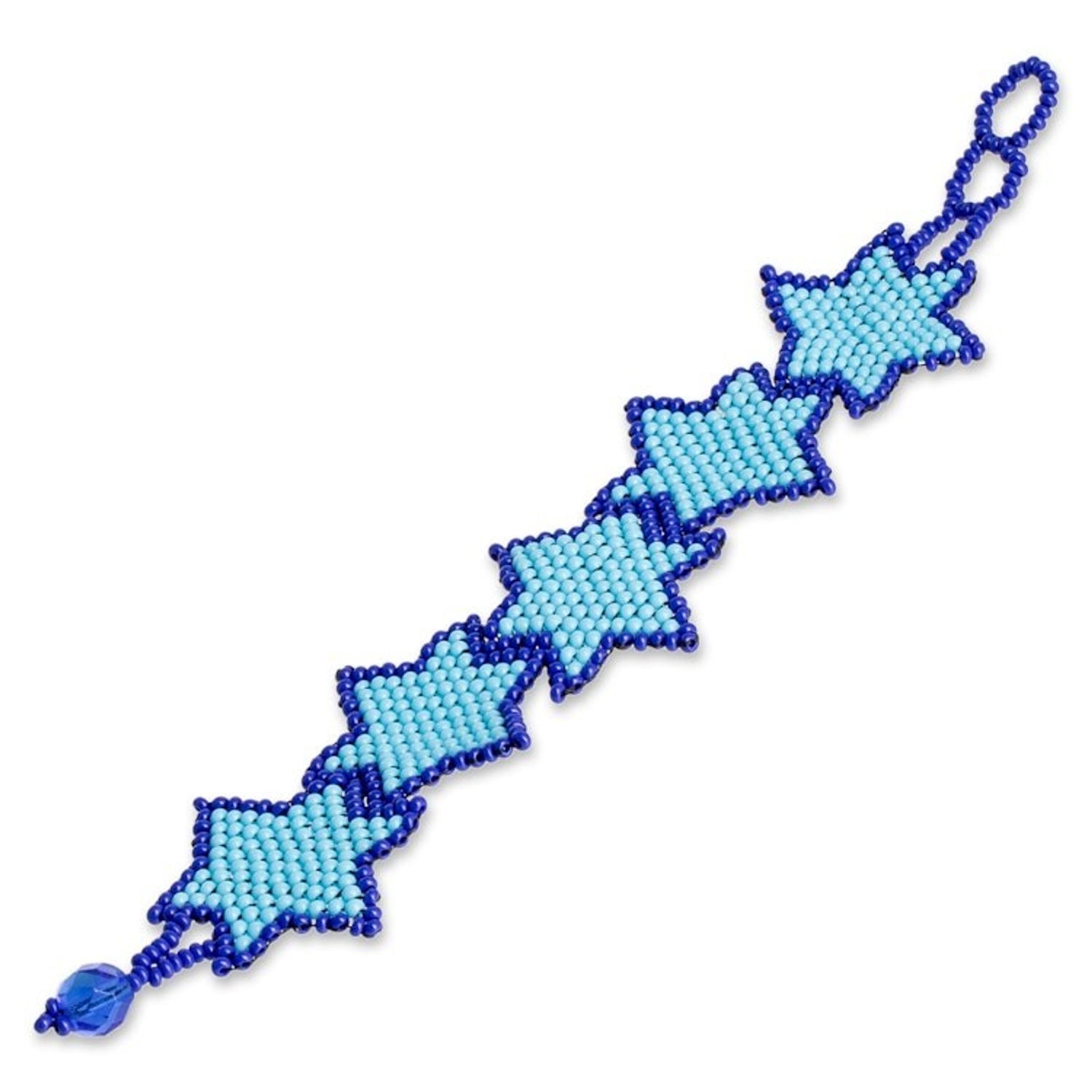 Star-Themed Handmade Beaded Wristband Bracelet in Blue Hues 'Azure Starlight'