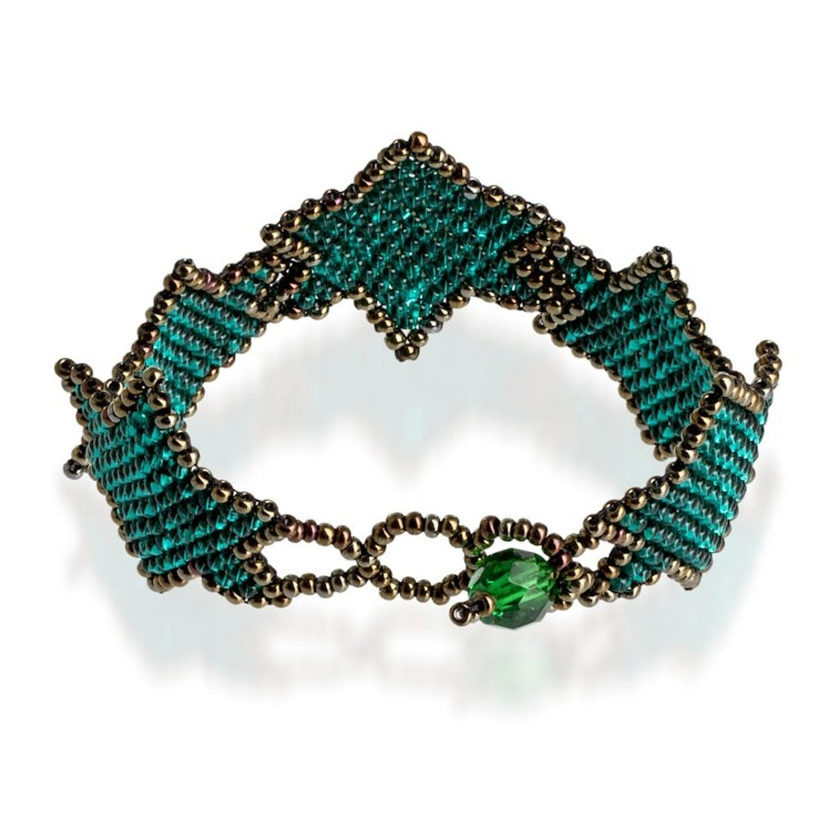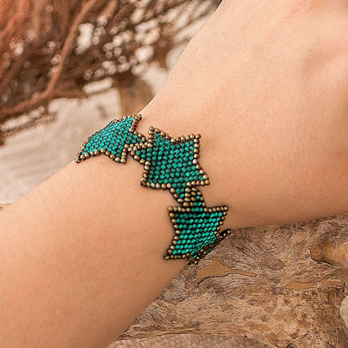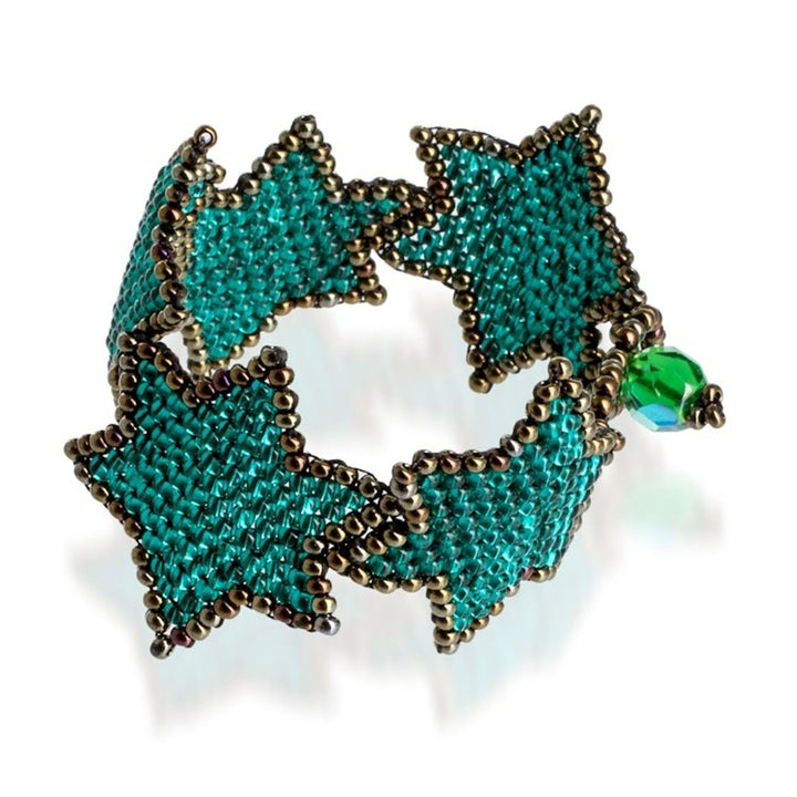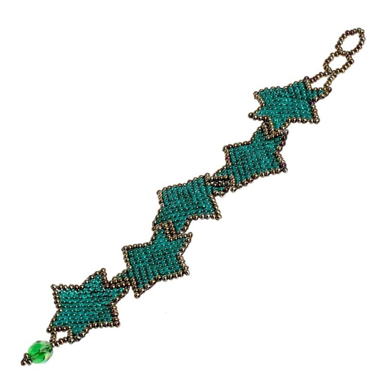 Teal Bronze Star-Themed Handmade Beaded Wristband Bracelet 'Teal Starlight'