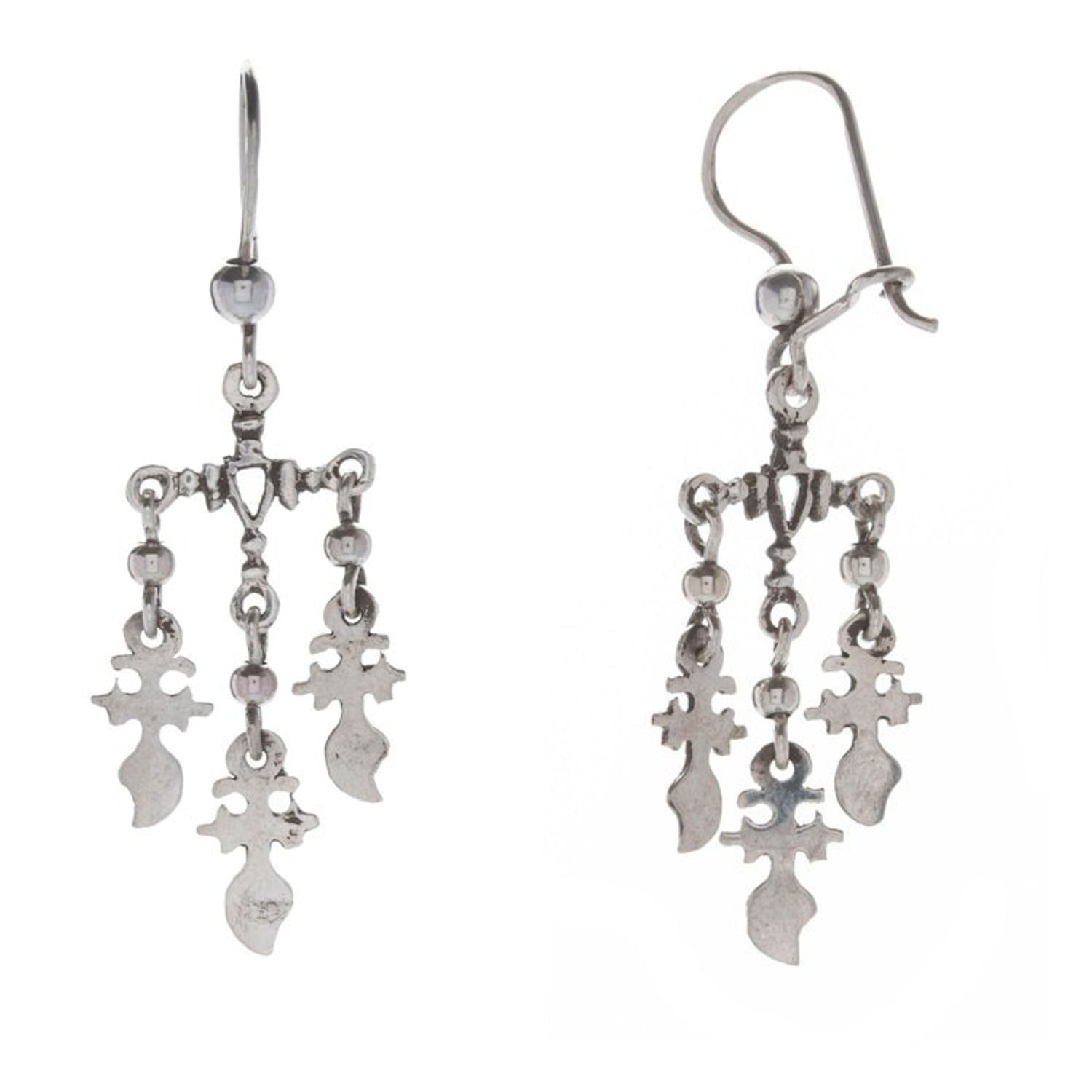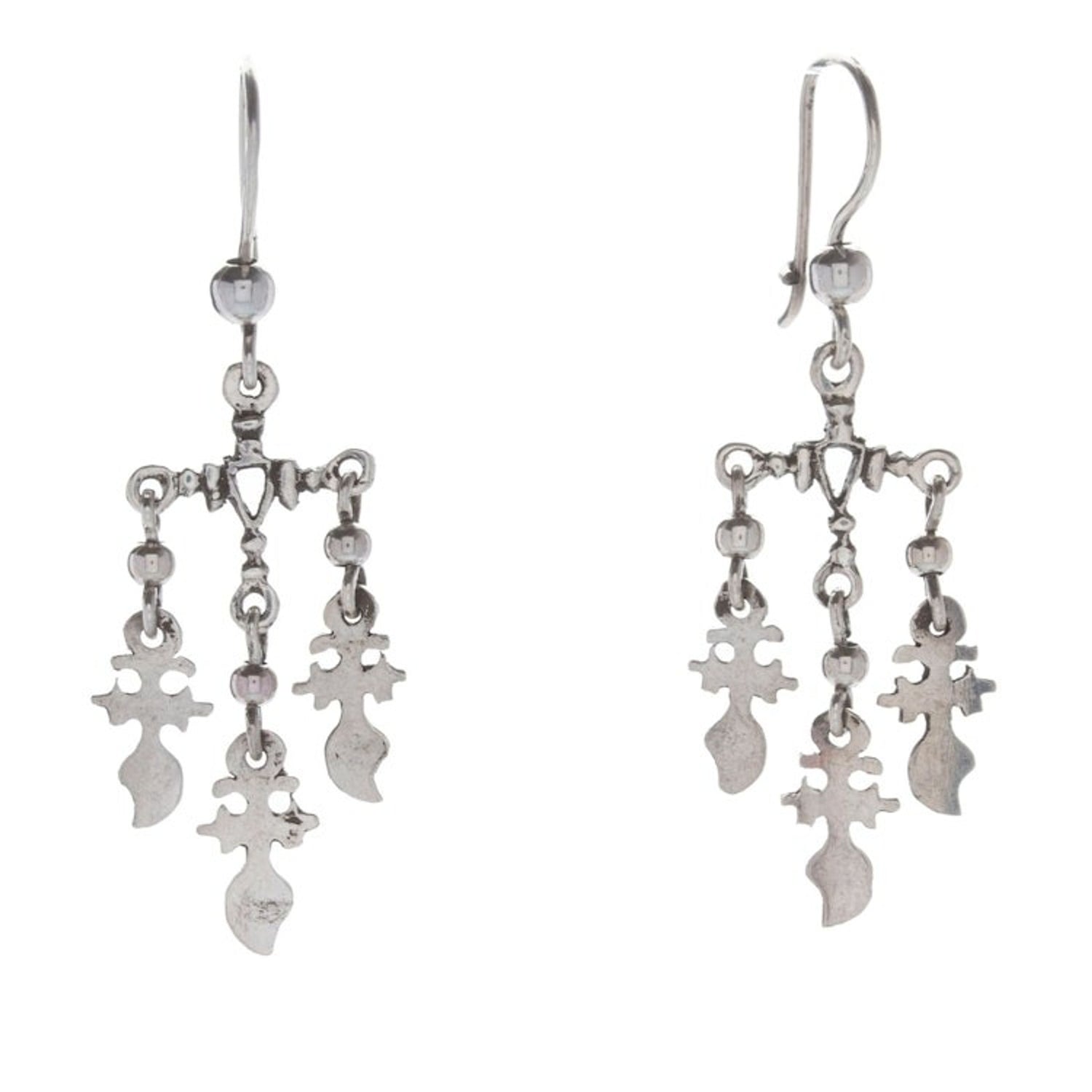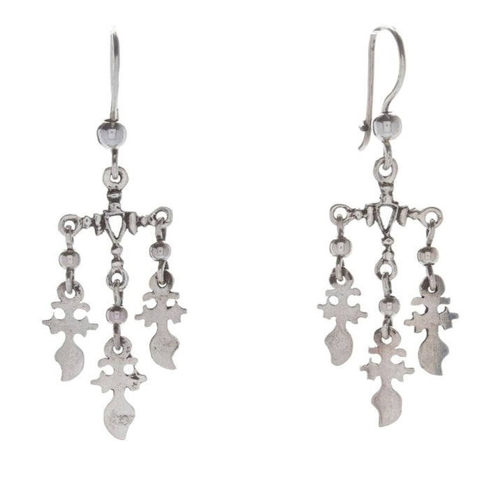 Polished Religious Sterling Silver Chandelier Earrings 'Oaxaca Spirits' Part of an ancient community of jewelry artisans, the Pacheco Gold and Silversmiths Association creates this sublime pair of sterling silver chandelier earrings full of hidden symbolism. Each little piece, consisting of cross motifs, comes polished for a dazzling look, making the design an elegant fashion statement.
