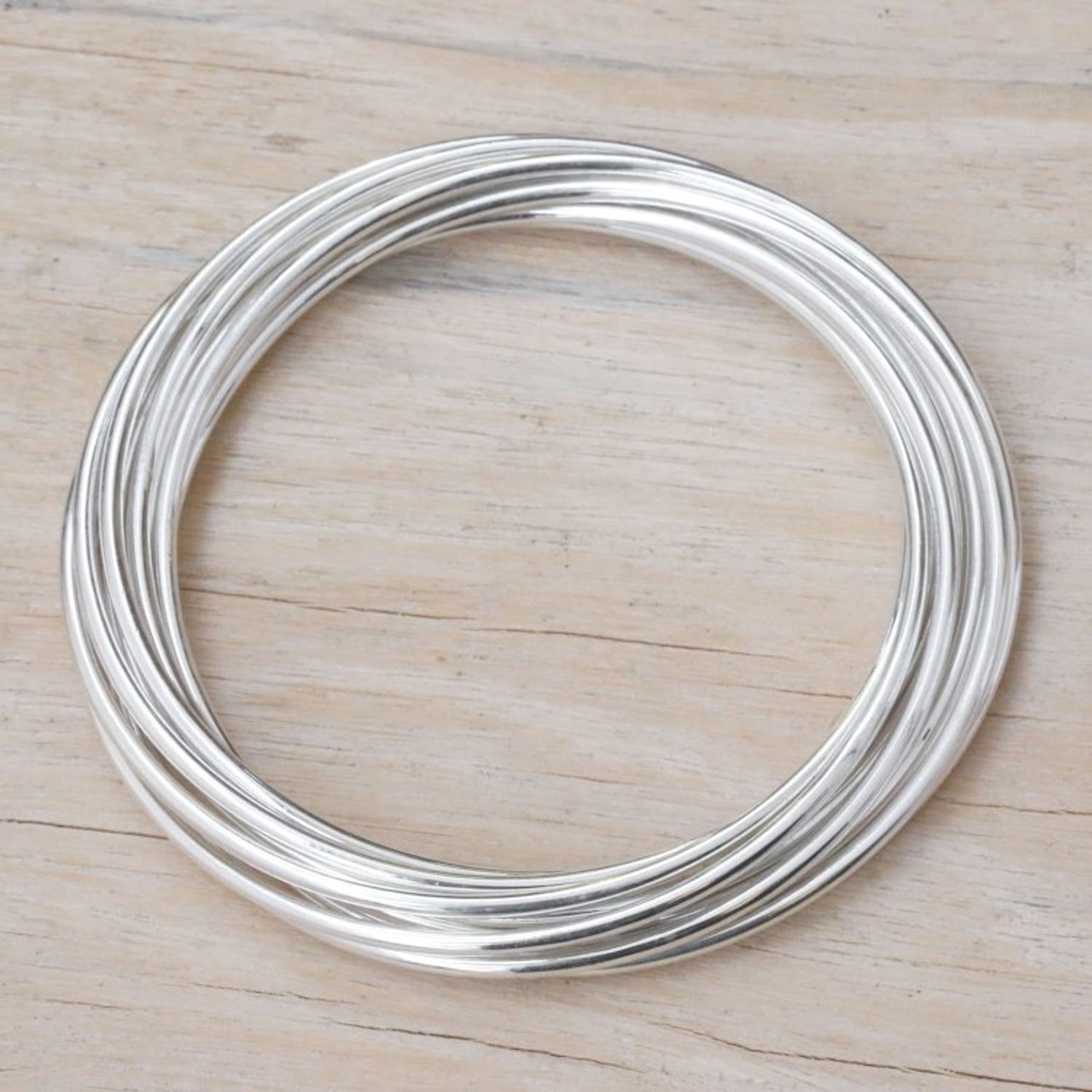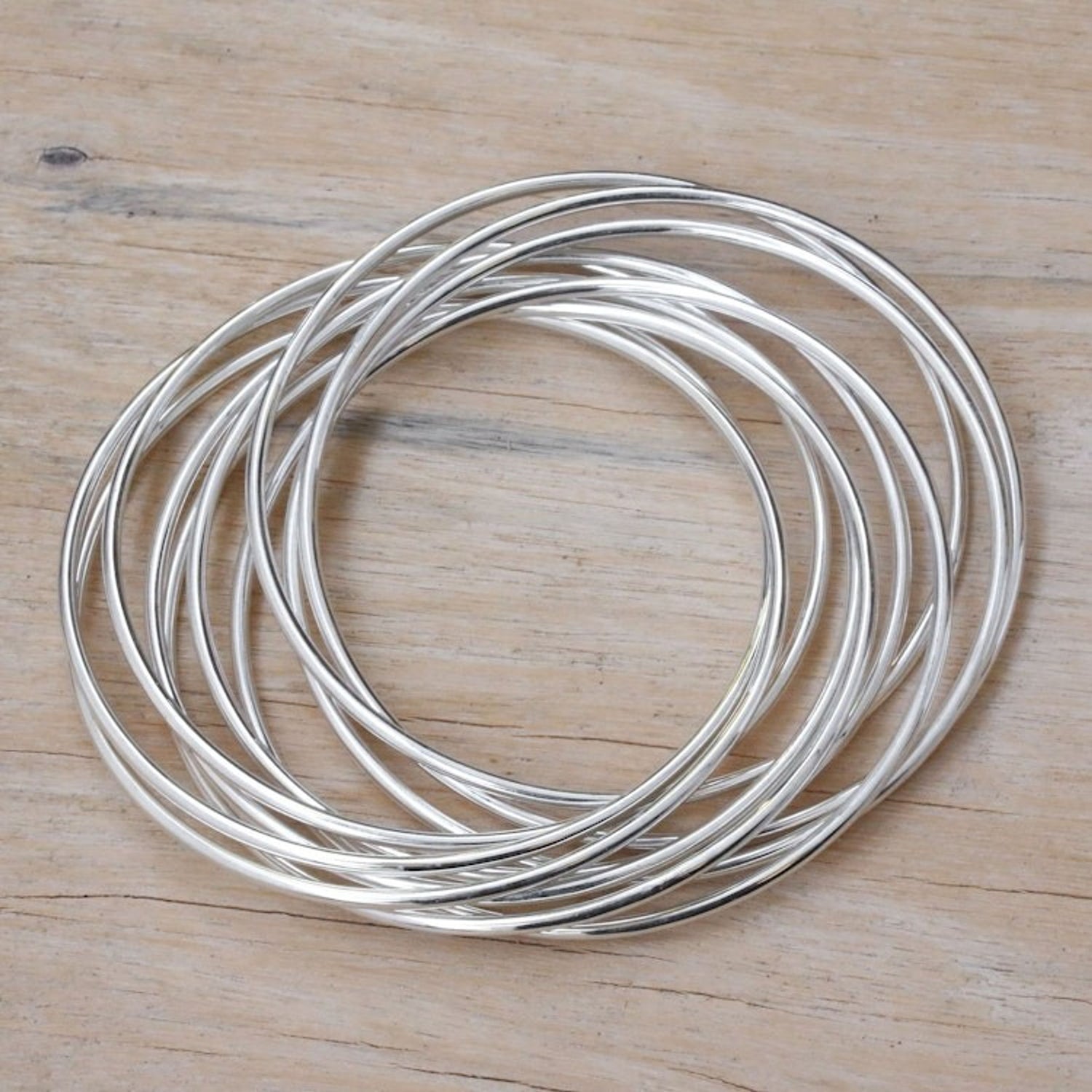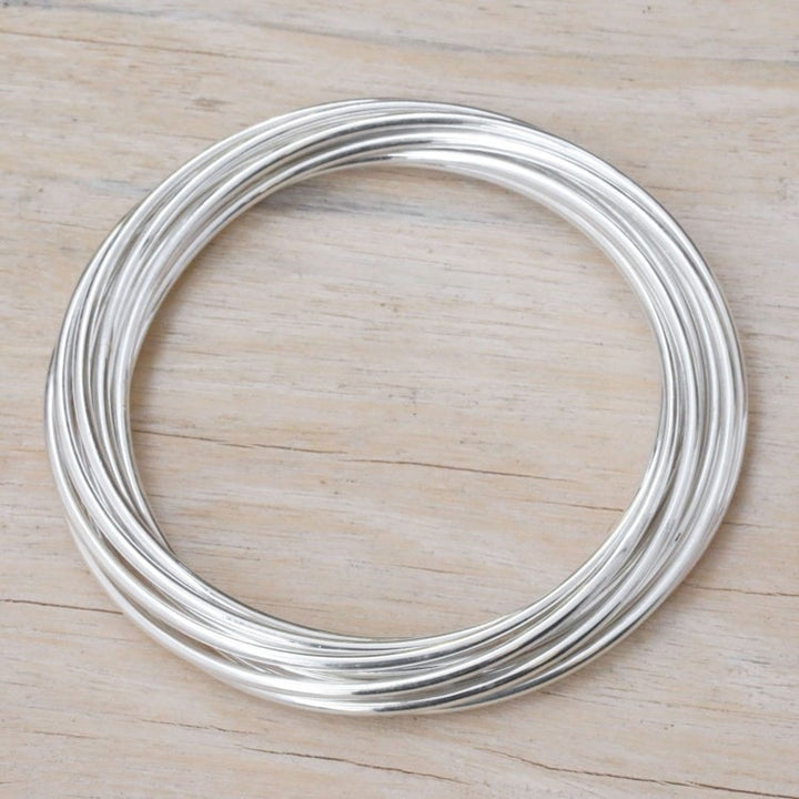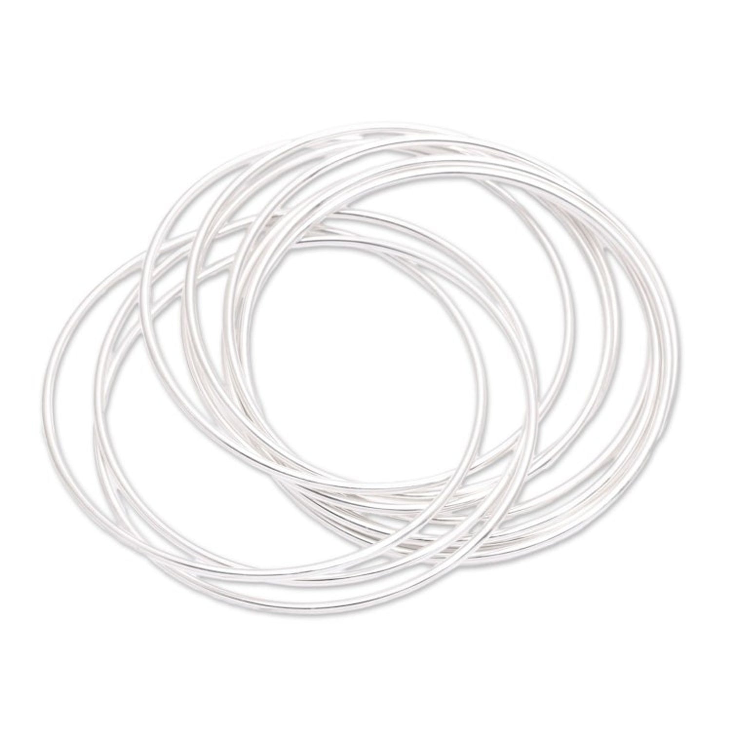 Sterling Silver Bangle Bracelet with 10 Bands from Bali 'Fortified Union' Ten silver circlets unite in a dazzling design by Komang Suastra. Crafted by hand, the modern bangle bracelet showcases the gleam of polished sterling silver.