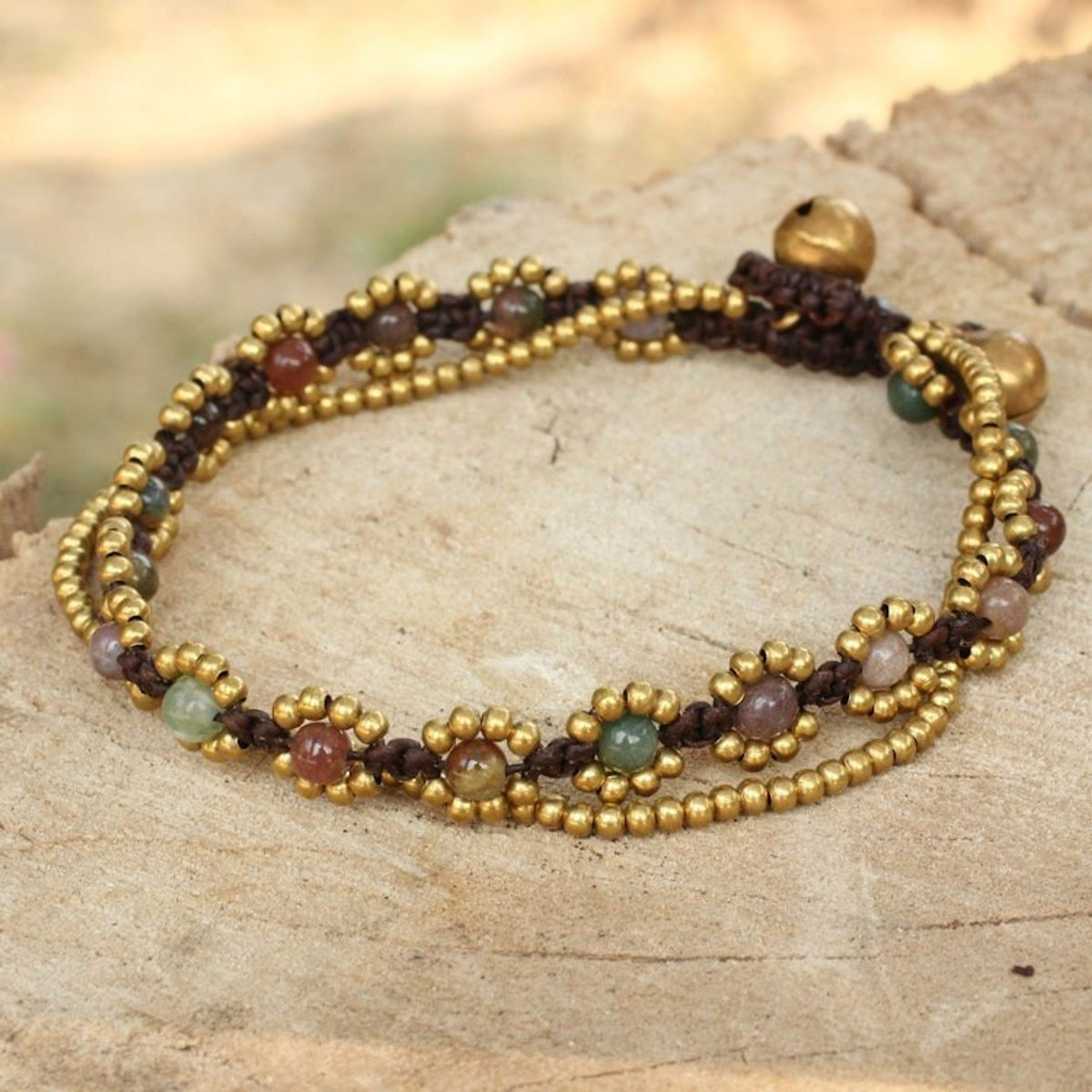 Hand Knotted Jasper Beaded Bracelet with Brass Bell 'Festive Day'
